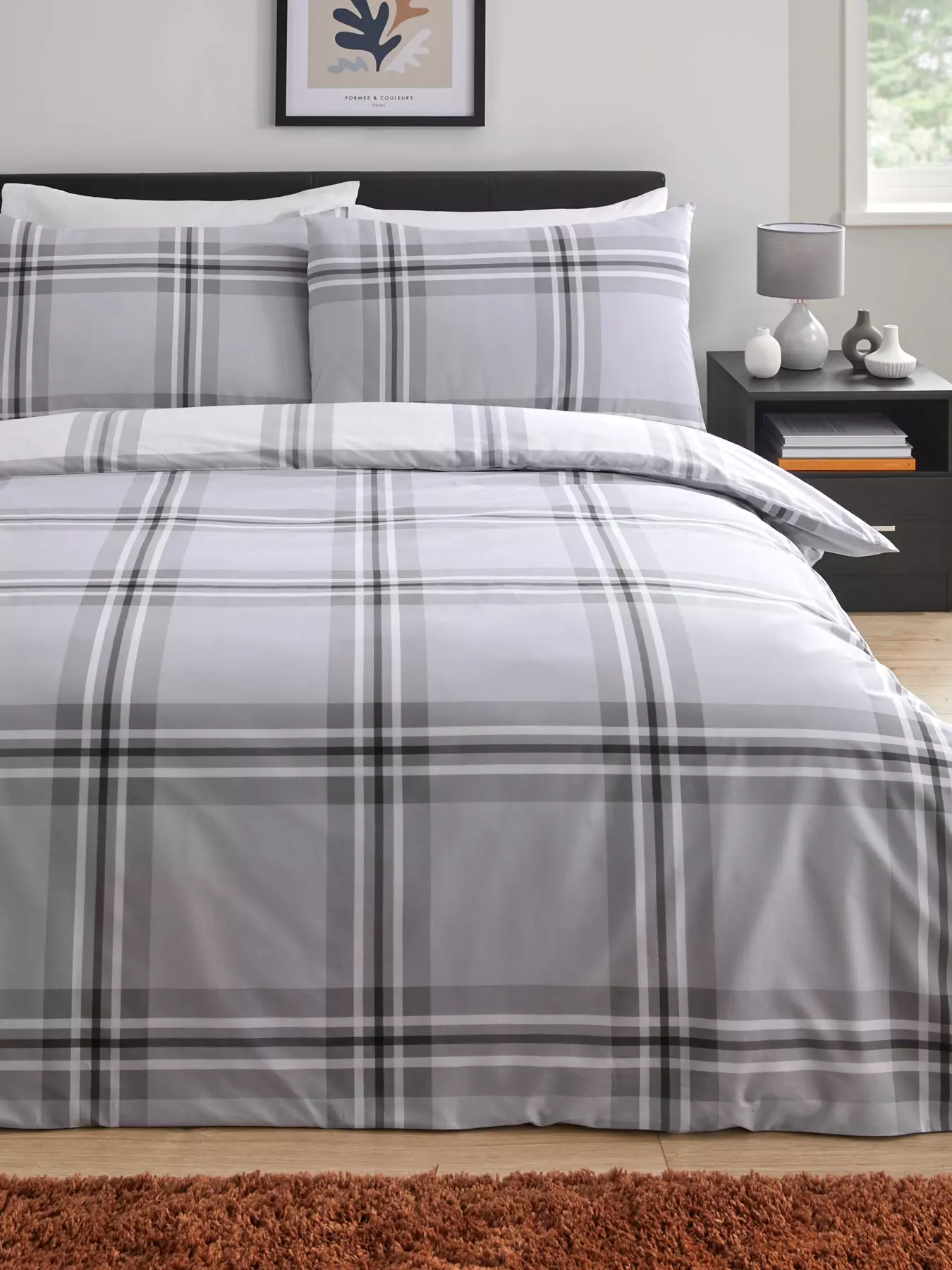 Very Home Grey Check Reversible Duvet Cover and Pillowcase Set in Single, Double and King sizes