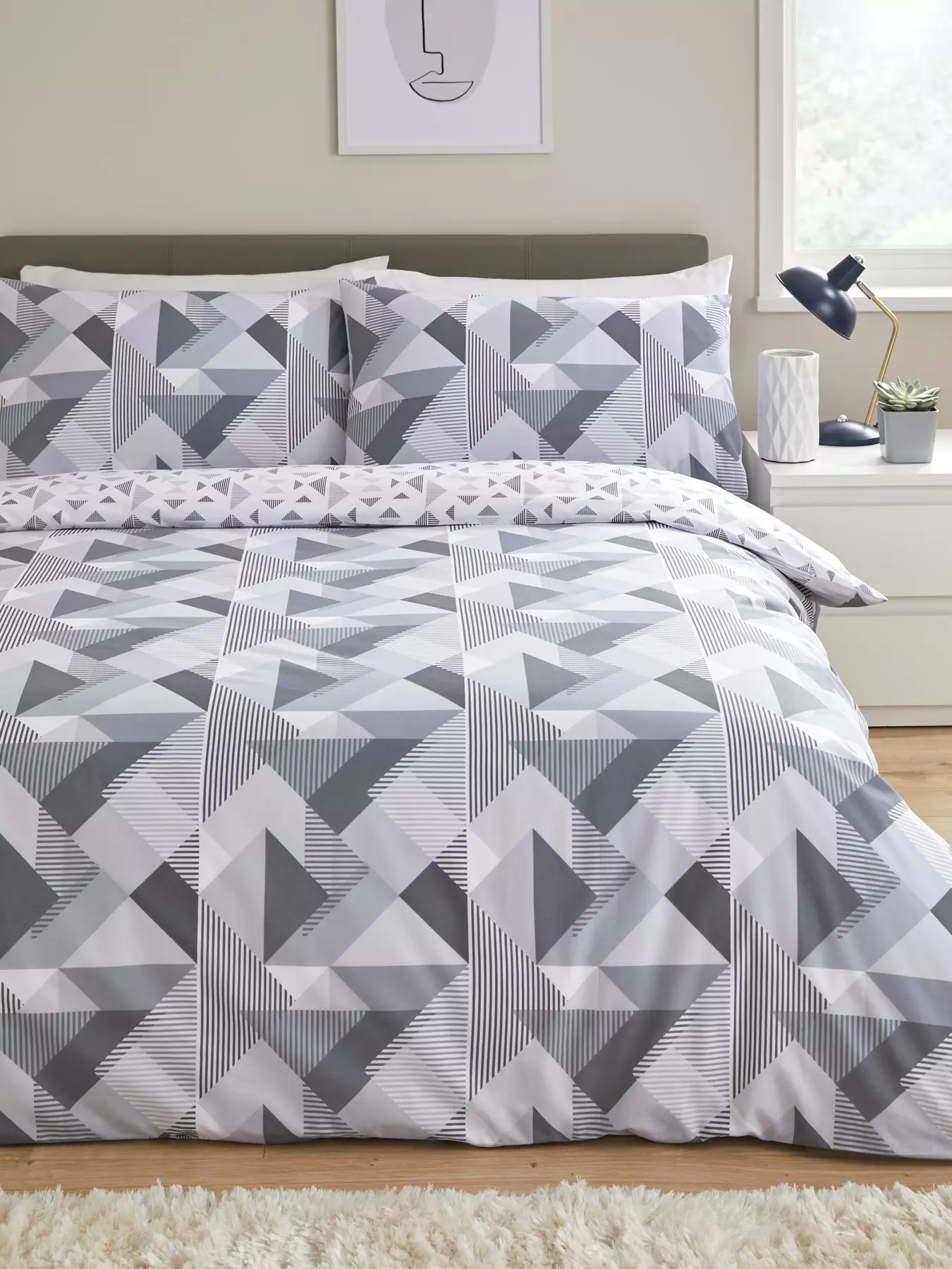 Very Home Grey Geo Reversible Duvet Cover and Pillowcase Set in Single, Double and King sizes