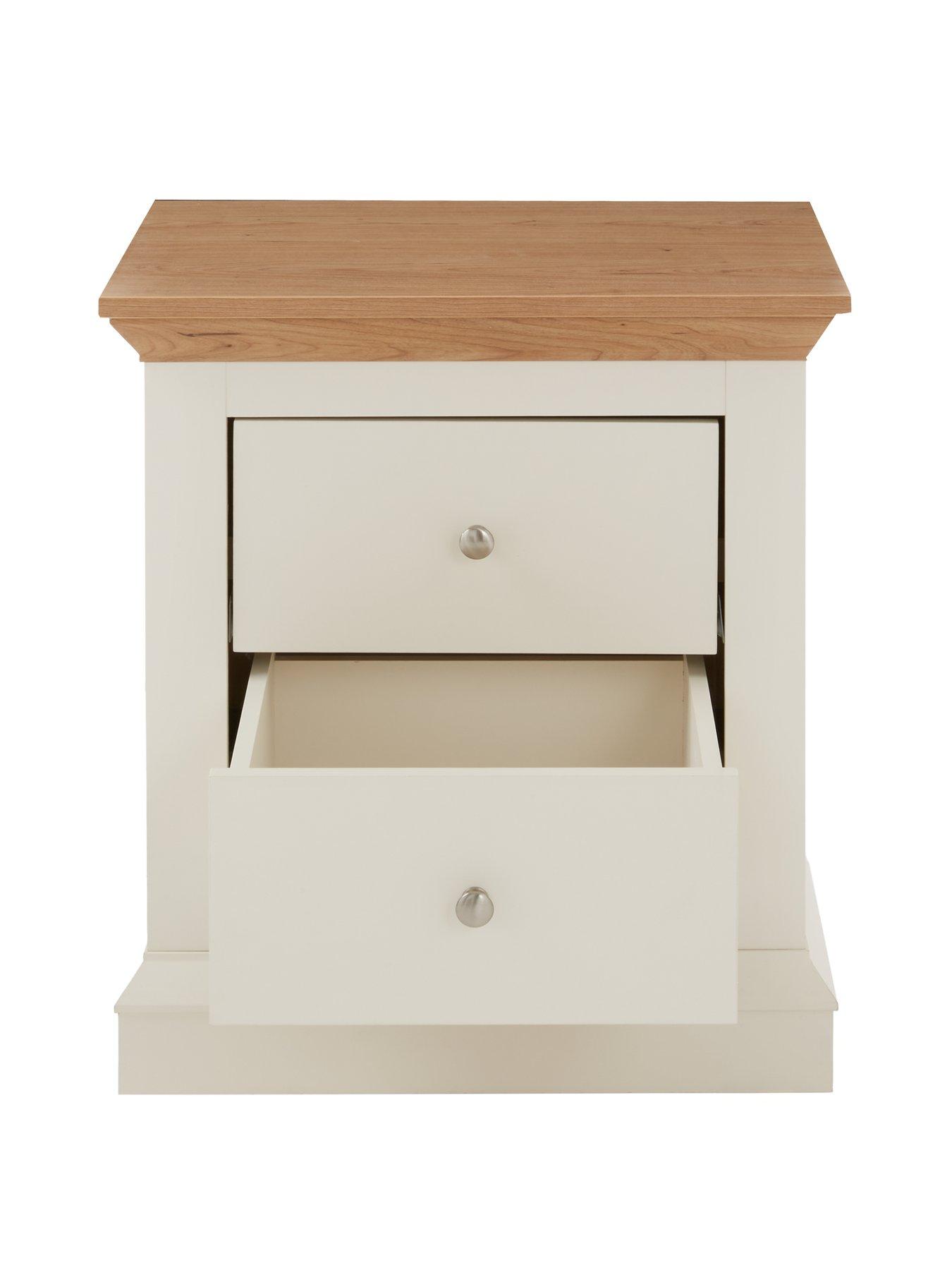 Very Home Hanna Pair of 2 Drawer Bedside Chests in Cream/Oak Effect or Grey/Oak EffectThis pair of bedside chests from the Very Home Hanna collection is perfect for treating your bedroom to a substantial, rural appearance that's made all the more eye catching by the breathtaking blend of finishes.Sitting on a deep plinth, the choice of painted cream or grey are each contrasted by a chunky oak-effect top with a striking sloped edge and intricate grain pattern. Accented with shiny metal handles, its smooth metal runners ensure the 2 drawers glide quietly open and closed. Get the look with the matching Hanna 3 door, 3 drawer wardrobe, 2 door wardrobe and chests of drawers, which are all available separately. Please remember to measure your available space before ordering. Dimensions: Height 58, Width 51, Depth 42 cm