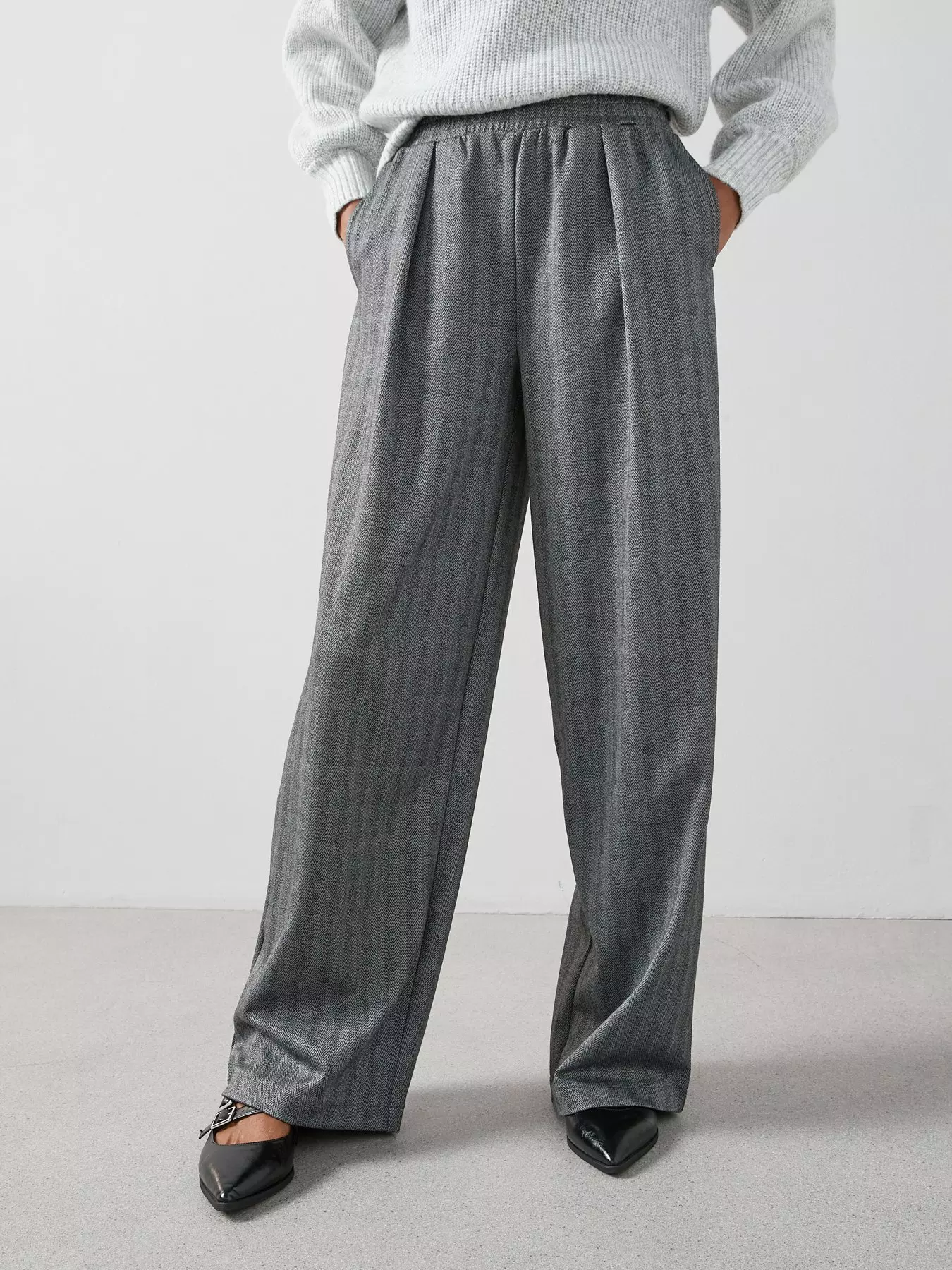 The Very CollectionHerringbone Wide Leg Trouser - Grey