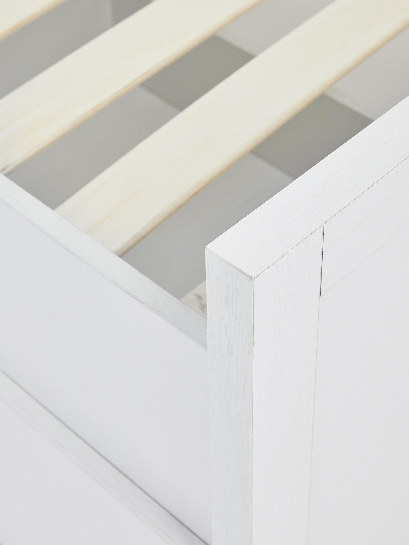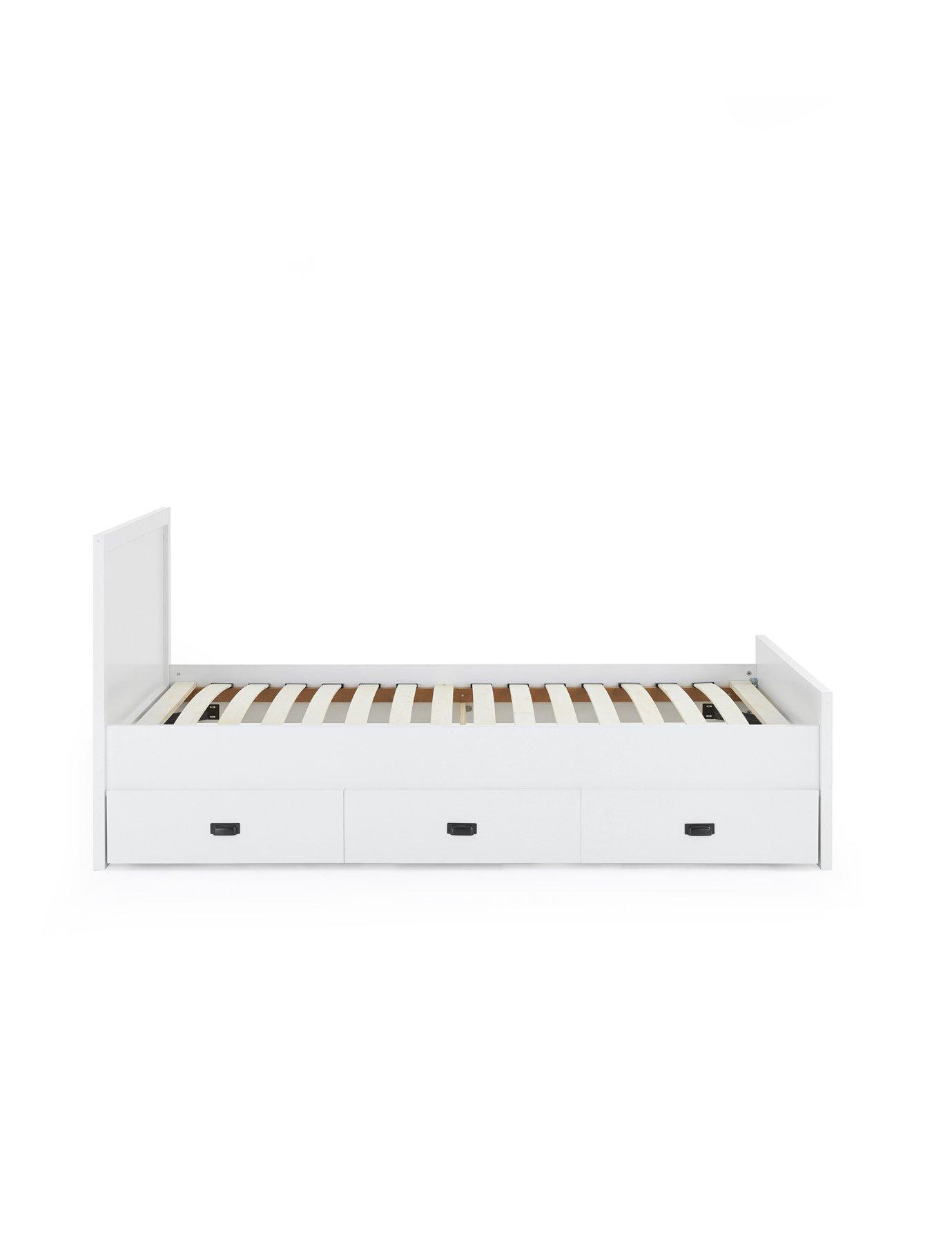 Very Home Jackson Single Bed with Money SAVING Mattress OfferThis Jackson kids bed frame by Very Home comes in a white shade and is detailed with a panelled headboard and footboard. Underneath are two storage drawers where kids can keep clothes, toys, games and more organised.Buy the bed frame only or make an overall SAVING when you add a specially selected mattress (see 'mattress guide' below to learn which one might be right for your child). Mattress guide: Standard - medium open coil spring unit and insulator pad for extra comfort. Premium - soft fillings surround a firm open coil spring unit. Finished with insulator pad and a quality Belgium damask fabric. No need to turn for ease of care.