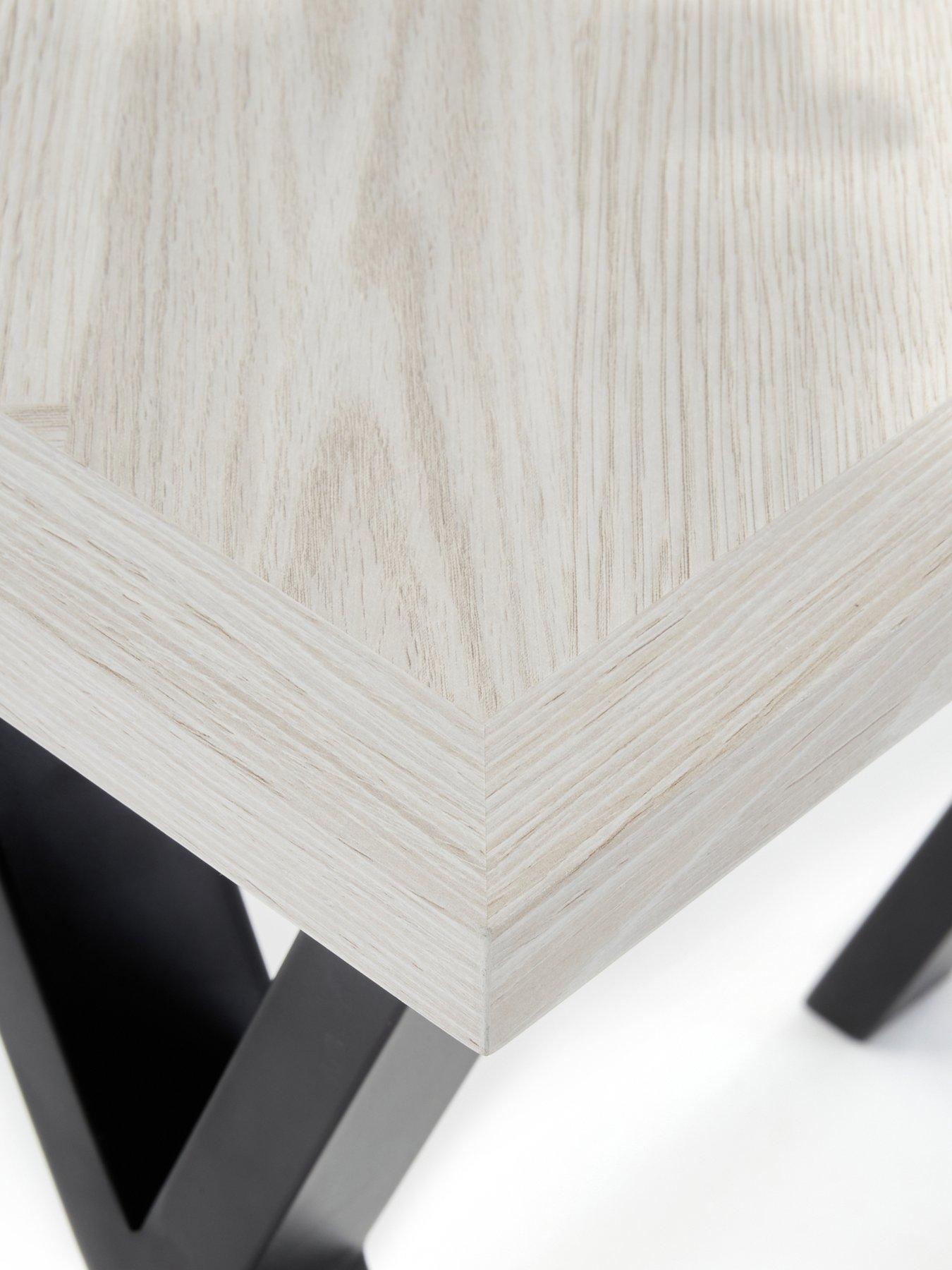 Very Home Kaia Sofa Side Table in Grey/Black - FSC® CertifiedStunningly styled side table with black metal cross-legged design and contrasting grey wood-effect top. It's perfect for sitting by a sofa so you have somewhere to perch your cuppa or for showing off your fave lamp or vase.Please remember to measure your available space before ordering. Dimensions: Height 55, Width 55, Depth 30 cm
