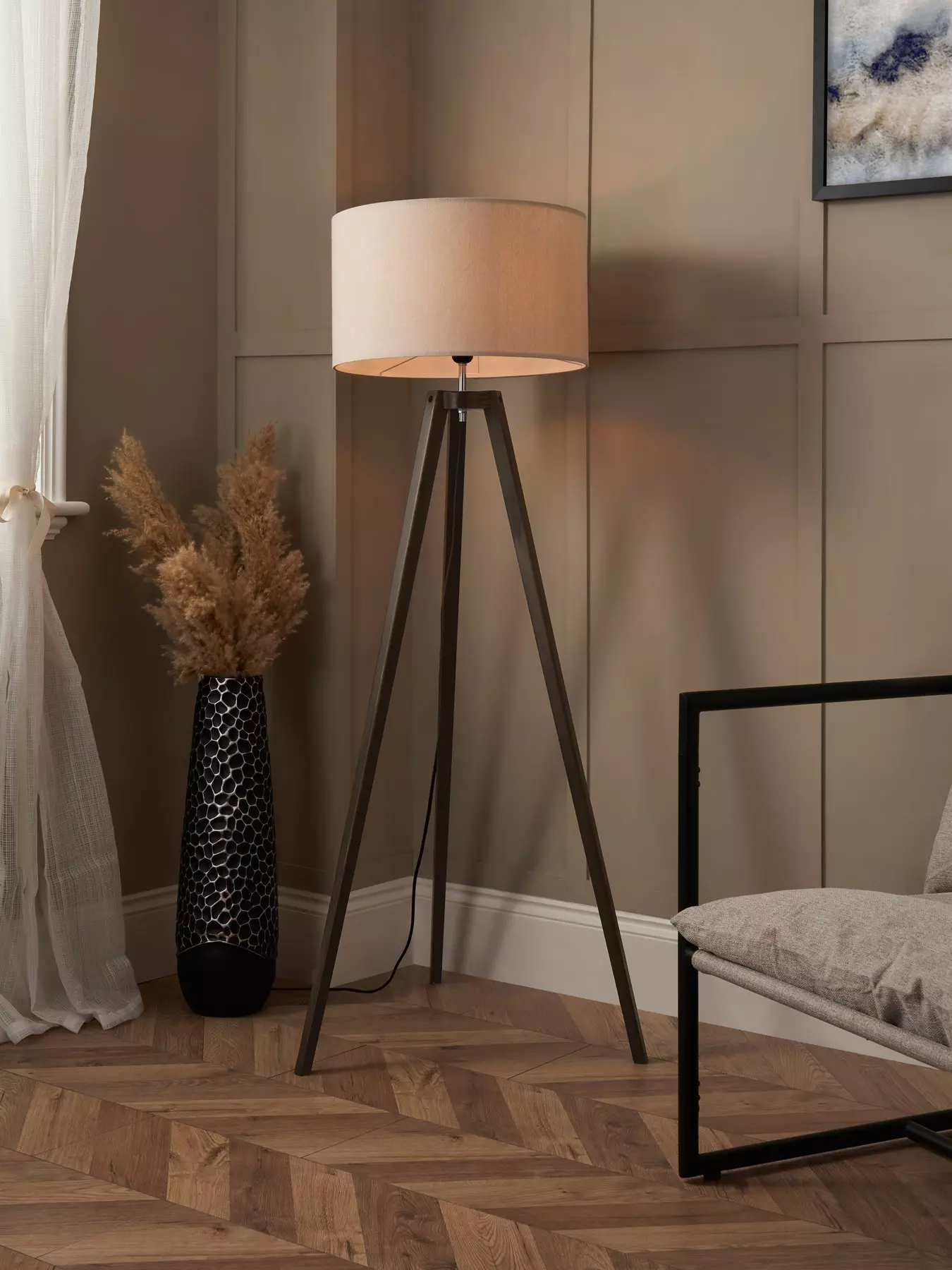 - Dark Wood Tripod Floor Lamp