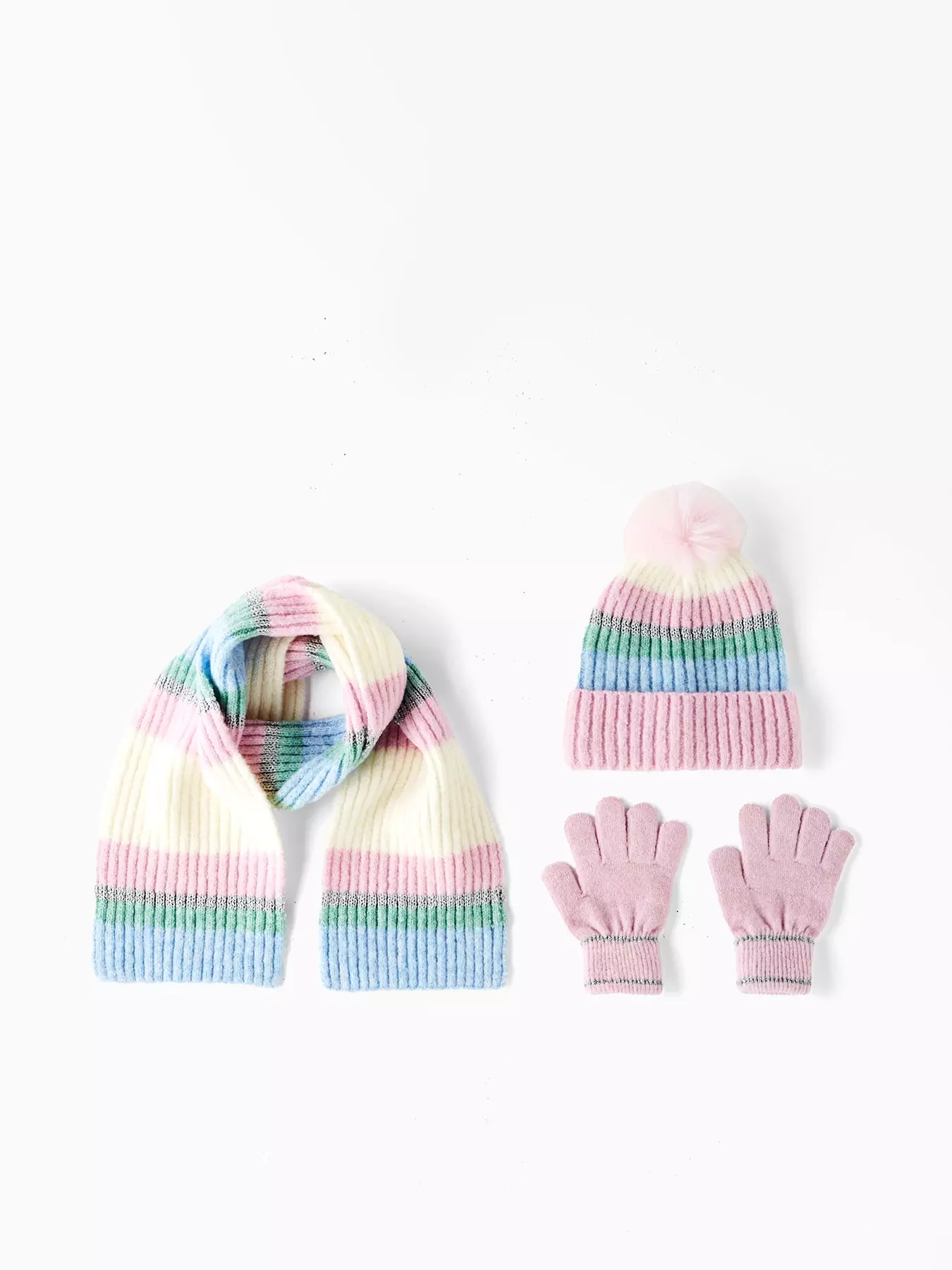 - Kids Lurex Stripe Hat, Scarf and Gloves Set 3 Piece by The Very Collection