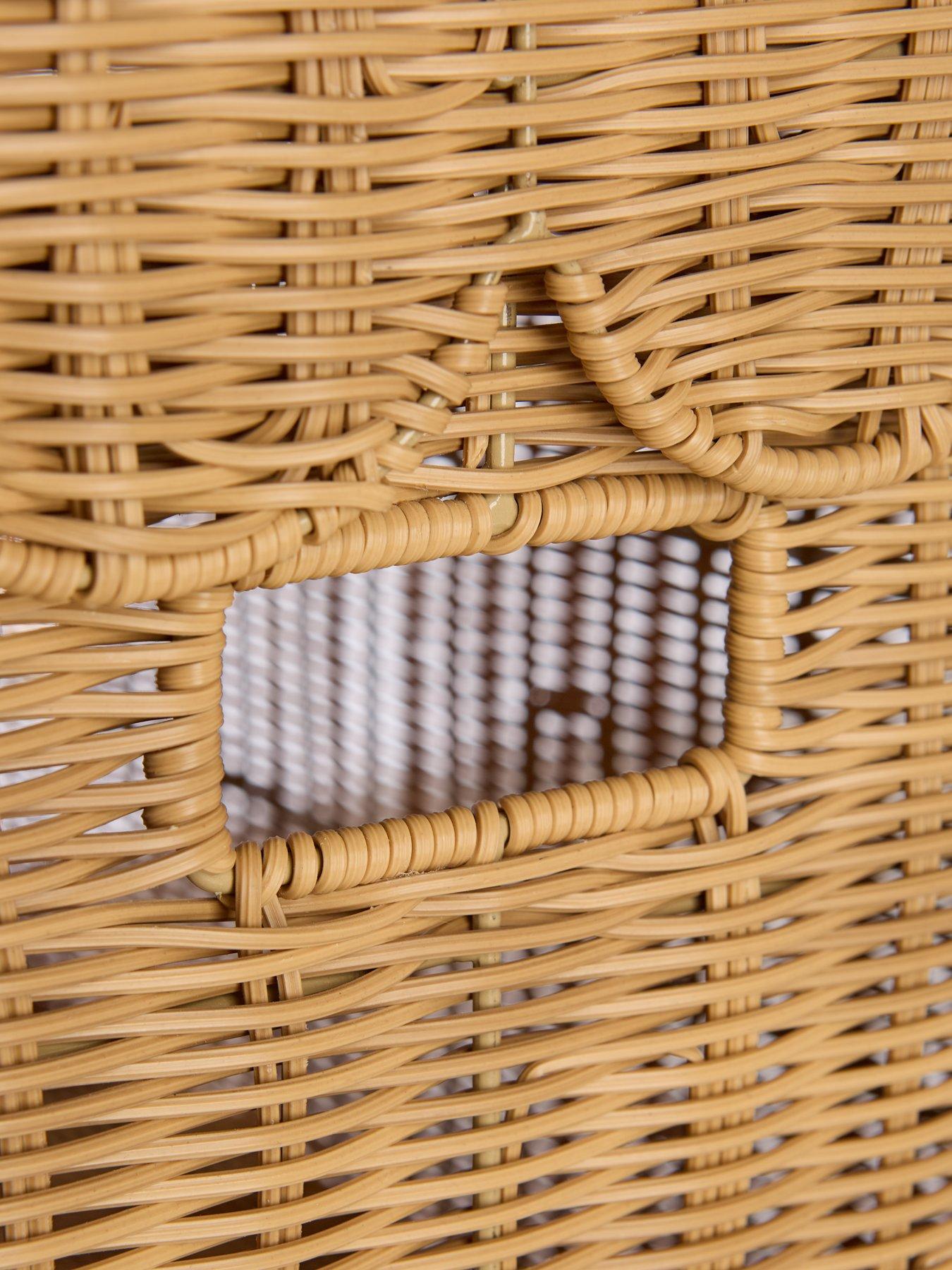 Very Home Large Scalloped Polyrattan Storage Chest – 45 x 55 x 75 cmThis gorgeous storage chest from Very Home takes its cues from traditional rustic designs.Measuring 45 x 55 x 75 cm, its metal frame is surrounded by woven poly rattan for a wicker-like visual that’s full of charm. In a nod to classic designs, it has a rounded top that can be secured via a loop and button, and it’s finished with scalloped detailing to the lid. Perfect for everything from spare cushions and blankets in the lounge to cuddly toys in your little one’s nursery, this chest is finished with handles to the side so it’s nice and easy to move.