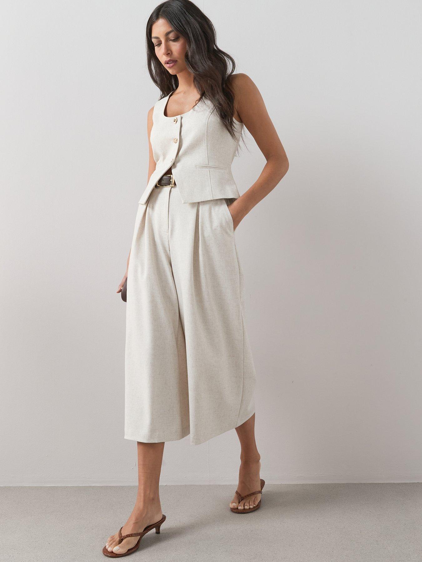 The Very Collection Linen Blend Tailored Culottes - Natural