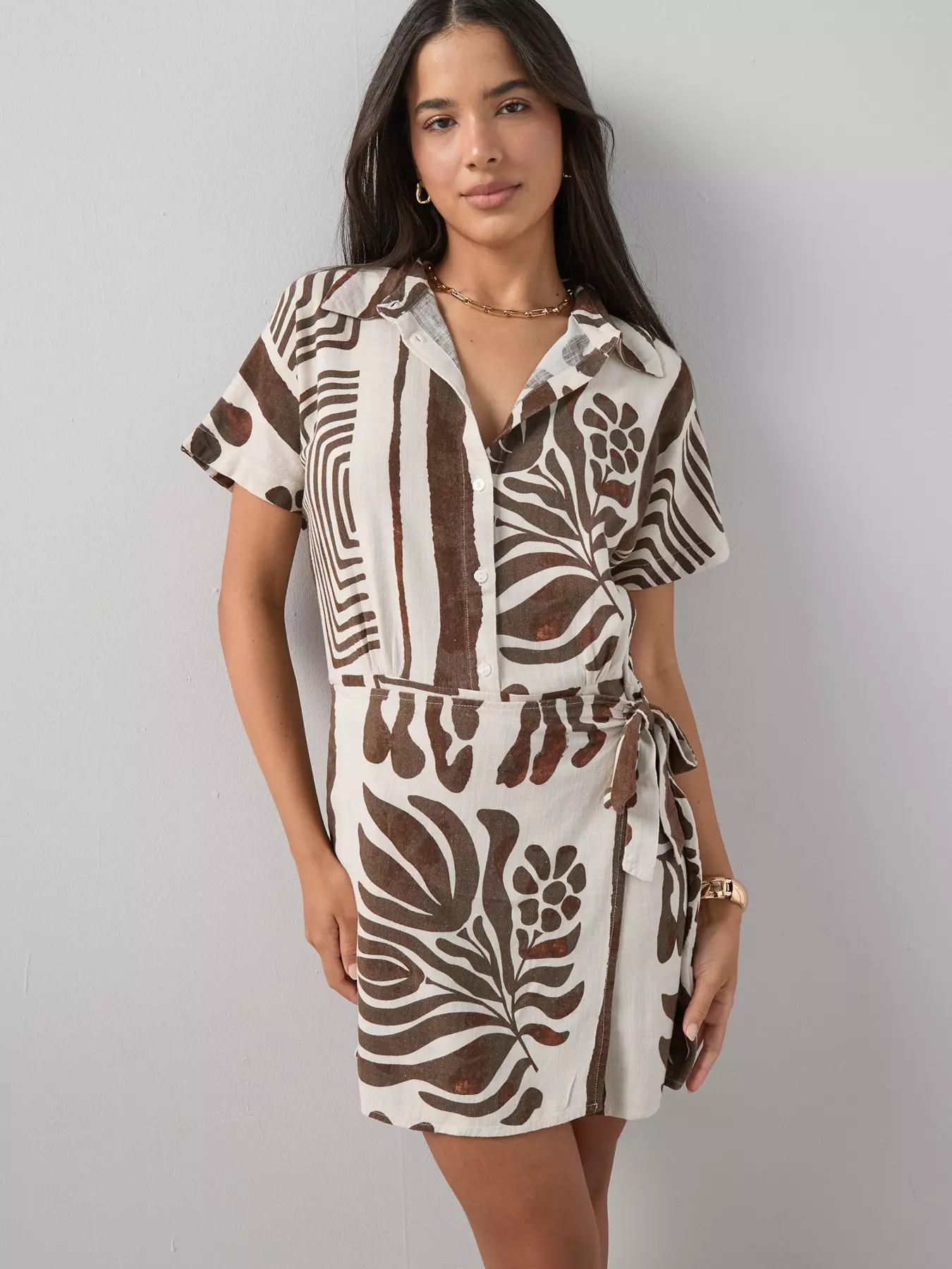 The Very CollectionLinen Blend Wrap Mini Dress - Print