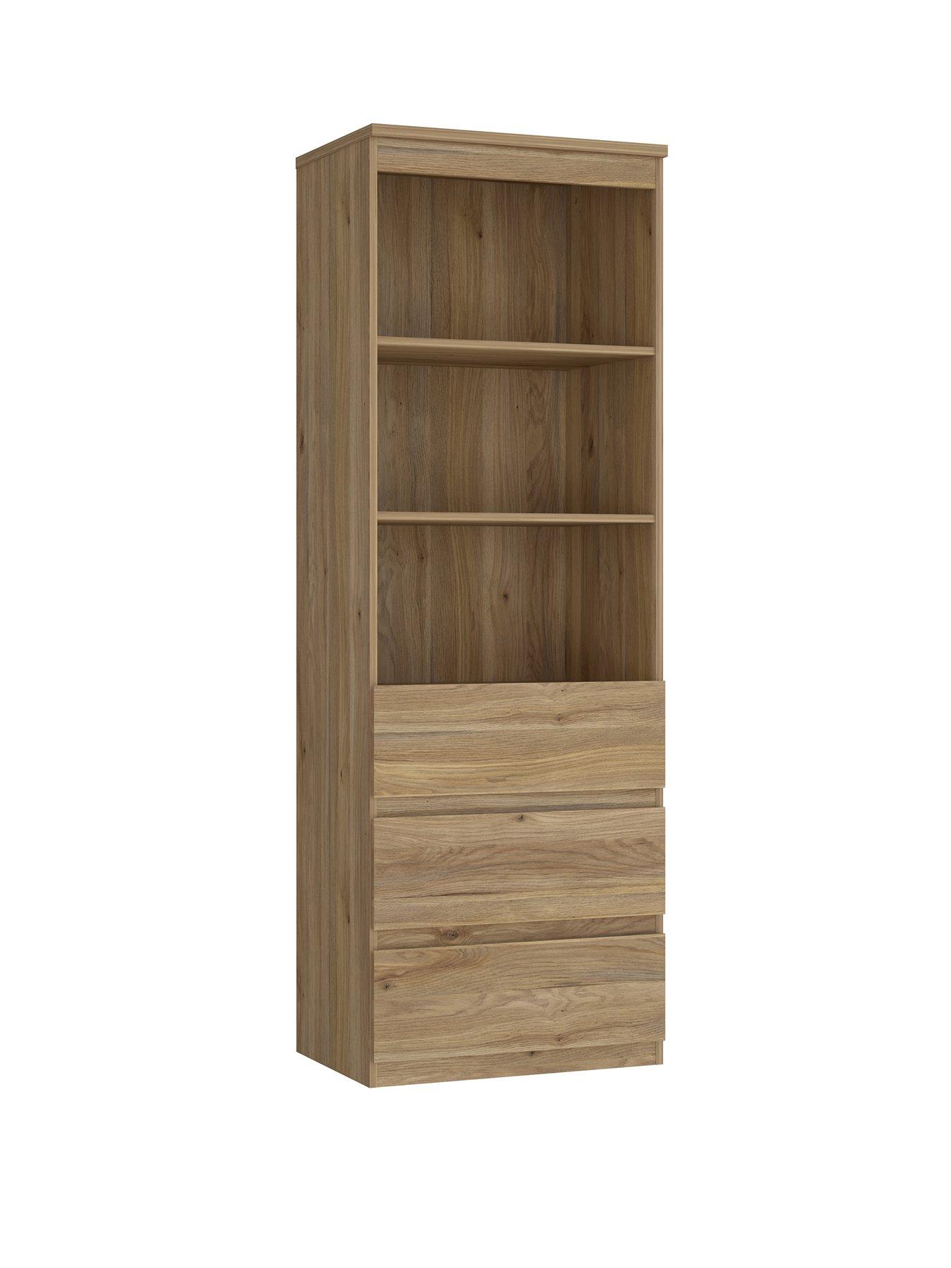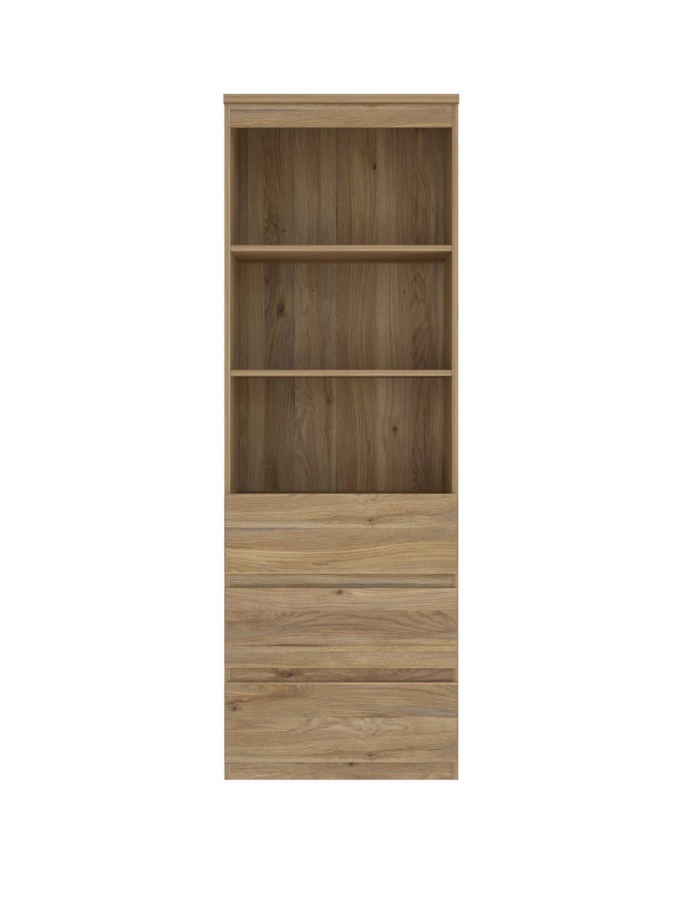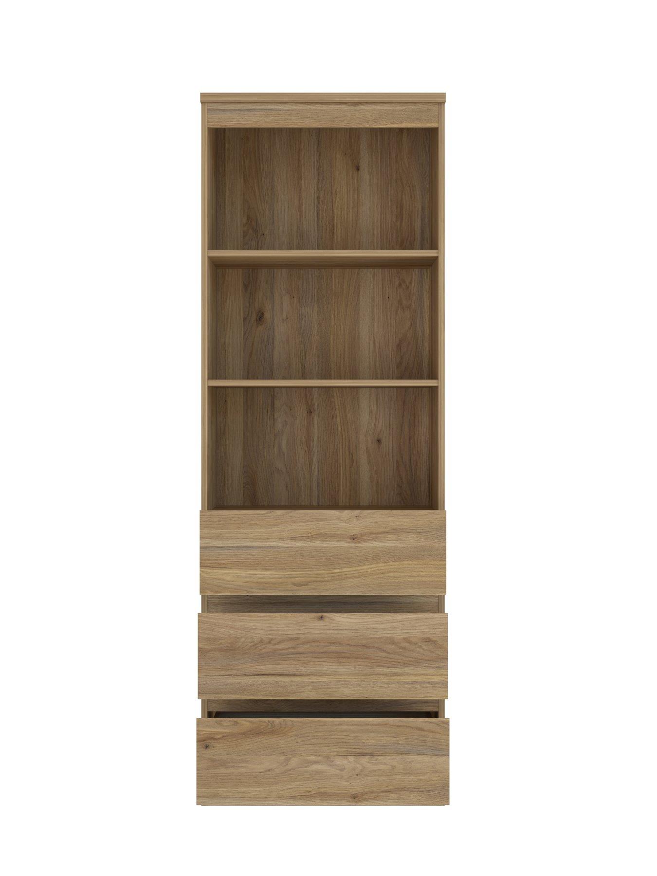 Very Home Lisson 3 Drawer Shelf Unit in New Oak Effect - FSC-certifiedFrom the fashionable Lisson collection by Very Home, this shelf unit has a modern, minimalist design.A breathtaking oak-effect finish styles up your space, while the matching internal wrap ensures this furniture looks good from every angle. This bookshelf is ideal for organising your home office, lounge or dining room. Three shelves are perfect for showing off your books, files, photo frames and so much more. The base has a trio of drawers which have a handle-free design so that there's nothing to interrupt the oak-effect finish. Each drawer runs smoothly and quietly (even when full) thanks to the easy-glide metal runners. Search Lisson to find even more furniture in this collection. Please remember to measure your available space before ordering. Dimensions: Height 176, Width 60, Depth 42 cm