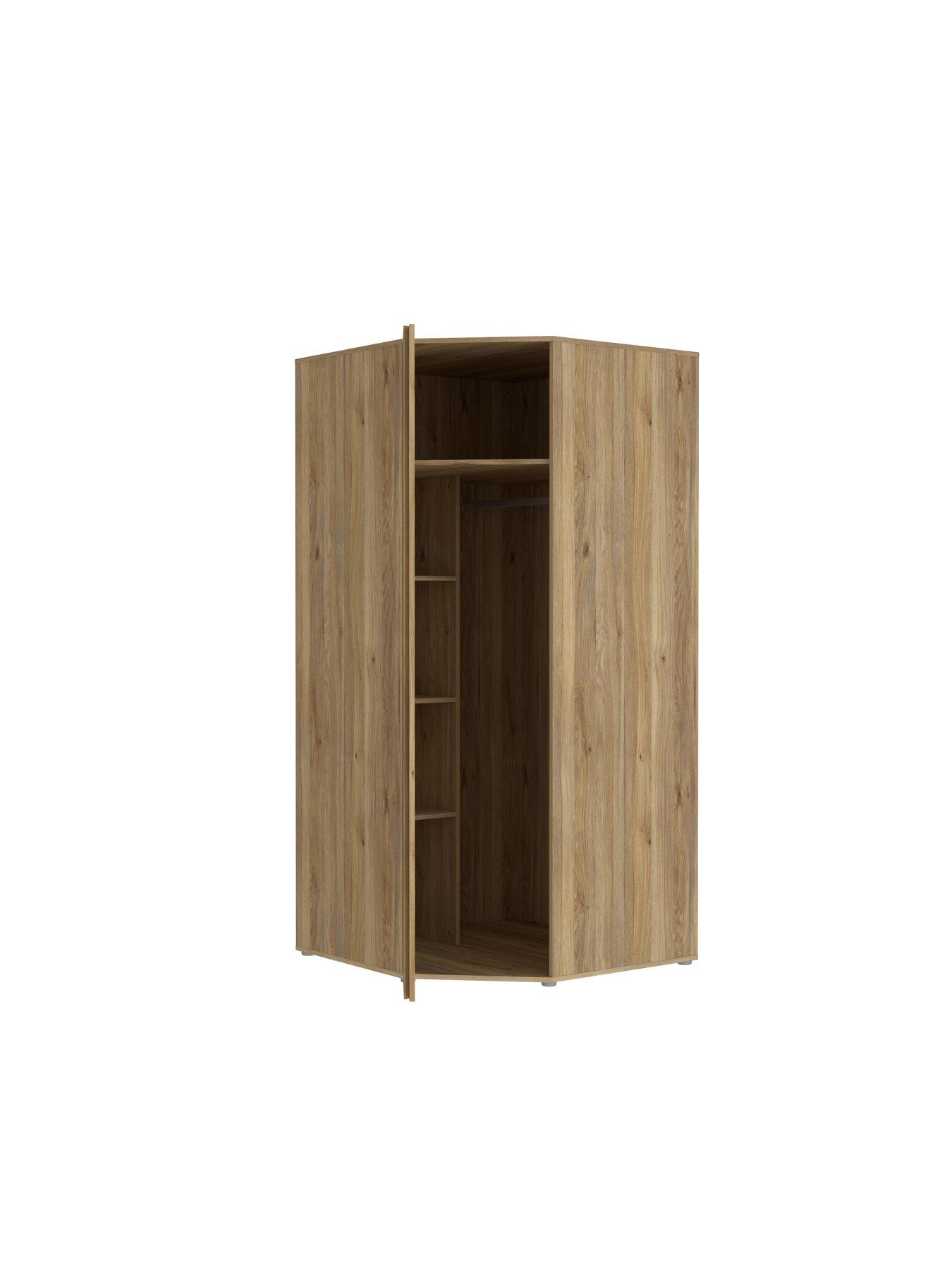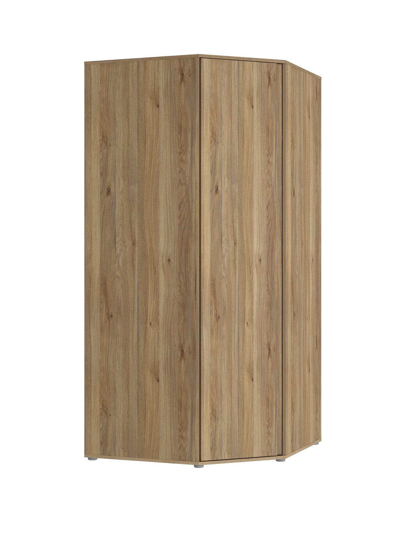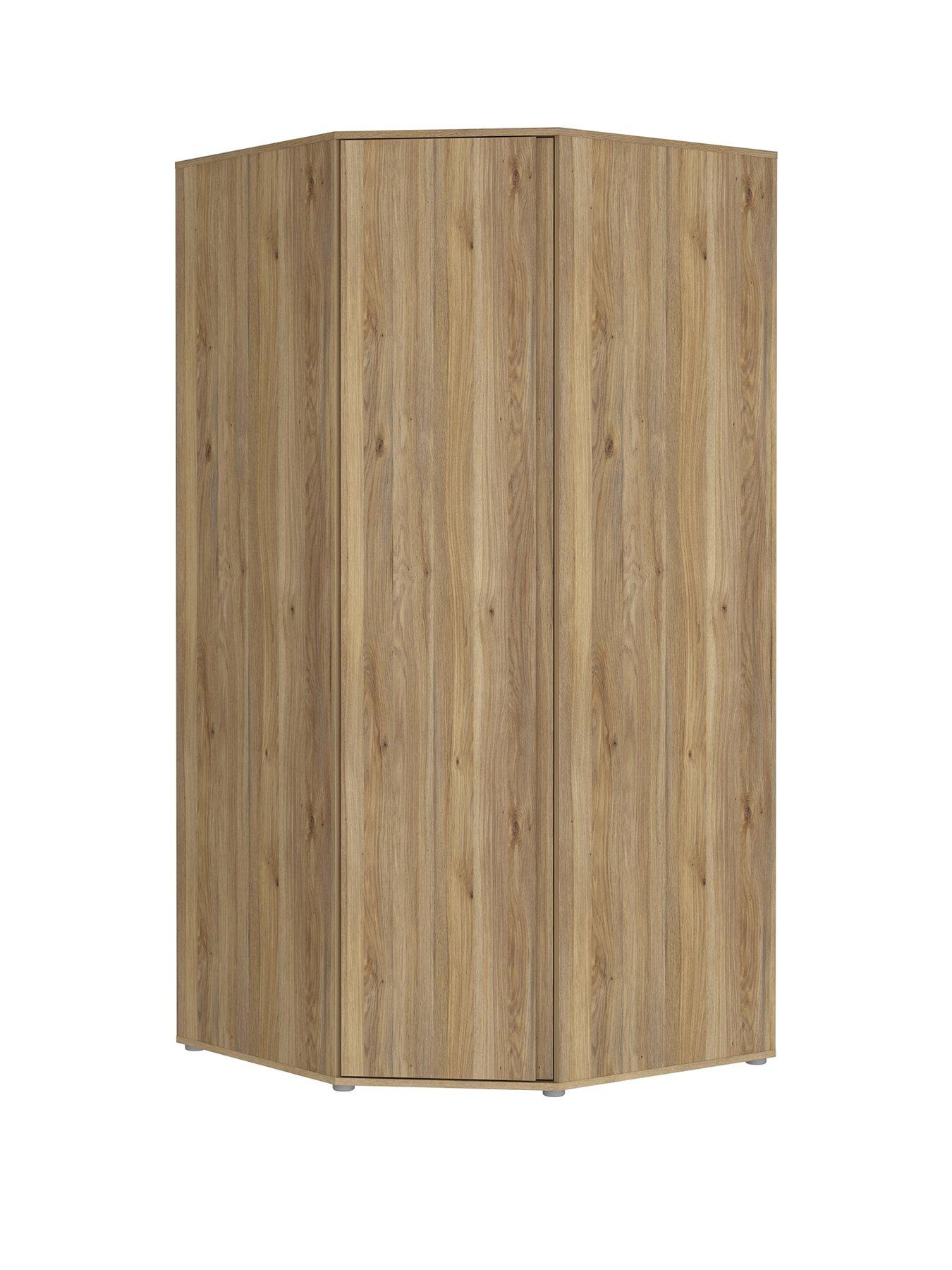 Very Home Lisson Corner Wardrobe in New Oak Effect - FSC® CertifiedFrom the fashionable Lisson collection by Everyday, this wardrobe has a modern, minimalist design.A new oak-effect finish adds a country cottage charm to your sleep space, while the matching internal wrap ensures this furniture looks good from every angle. Making sure there's nothing to distract the attention away from its clean silhouette, the door has a handle-free design. As well as a metal hanging rail, there is also a large high shelf plus a series of smaller cube shelves (perfect for tees, footwear, storage baskets and more). You can find a wide range of matching furniture by searching Lisson. Please remember to measure your available space before ordering. Dimensions: Height 193.7, Width 92.2, Depth 92.2 cm