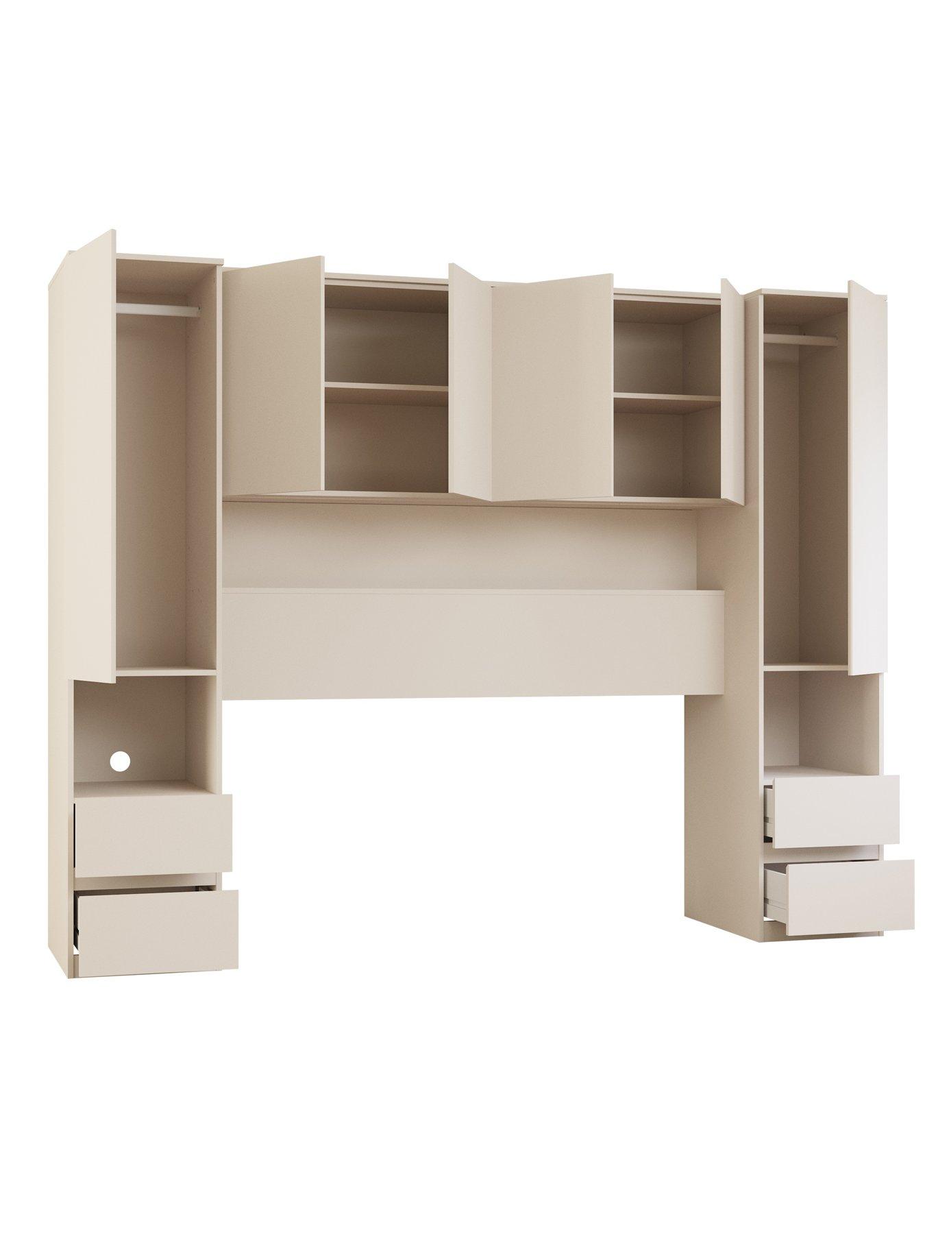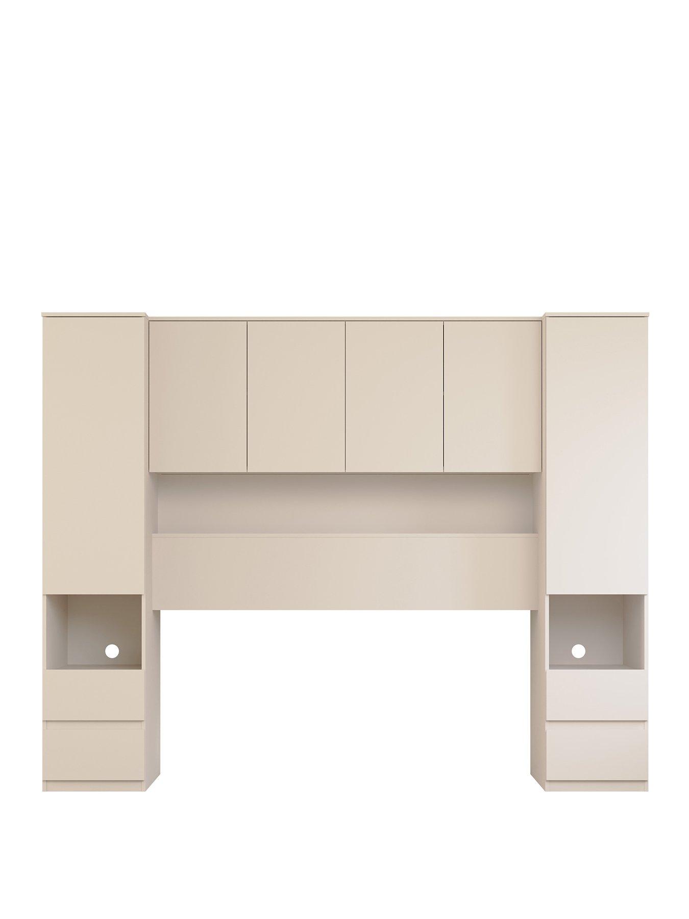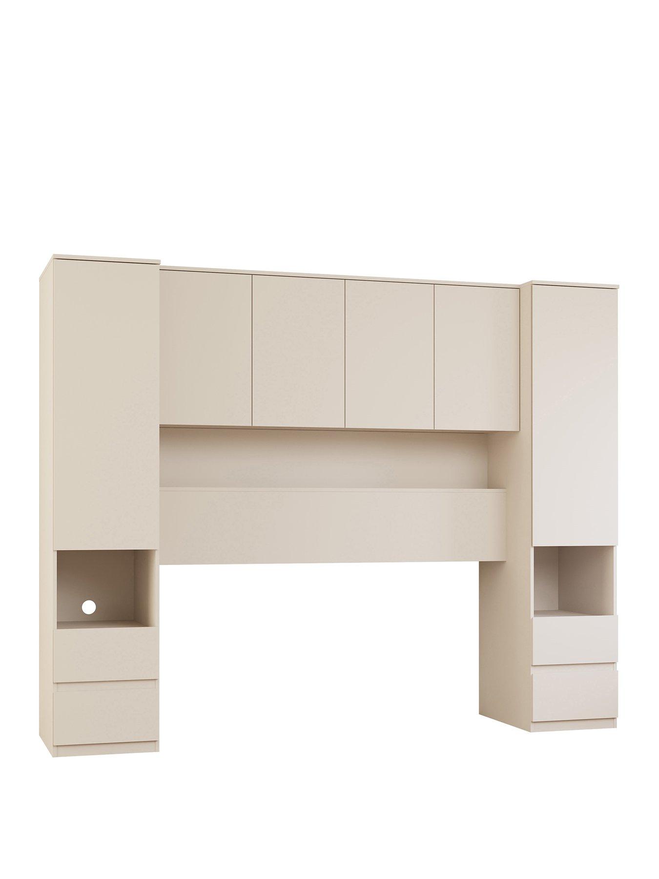 Very Home Lisson Overbed Unit in Oatmeal - FSC® CertifiedFrom the fashionable Lisson collection by Very Home, this unit makes clever use of the space around your bed, providing a superb storage solution.With a modern design and smart oatmeal finish, it's matching internal wrap ensures this furniture looks good from every angle. And to make sure there's nothing to distract the attention away from its clean silhouette, the drawers and cupboard doors have a handle-free design. Each side features two drawers and an open cubby for bedside essentials, as well as a narrow wardrobe with metal hanging rail. The centre section has an open shelf plus extra cupboard space with internal shelving - perfect for clearing away the clutter for a neat and tidy bedroom. You can find a wide range of matching furniture by searching Lisson. Please remember to measure your available space before ordering. Dimensions: Height 197.4, Width 244.9, Depth 52.7 cm Internal space accommodates a bed up to 150 cm in width.