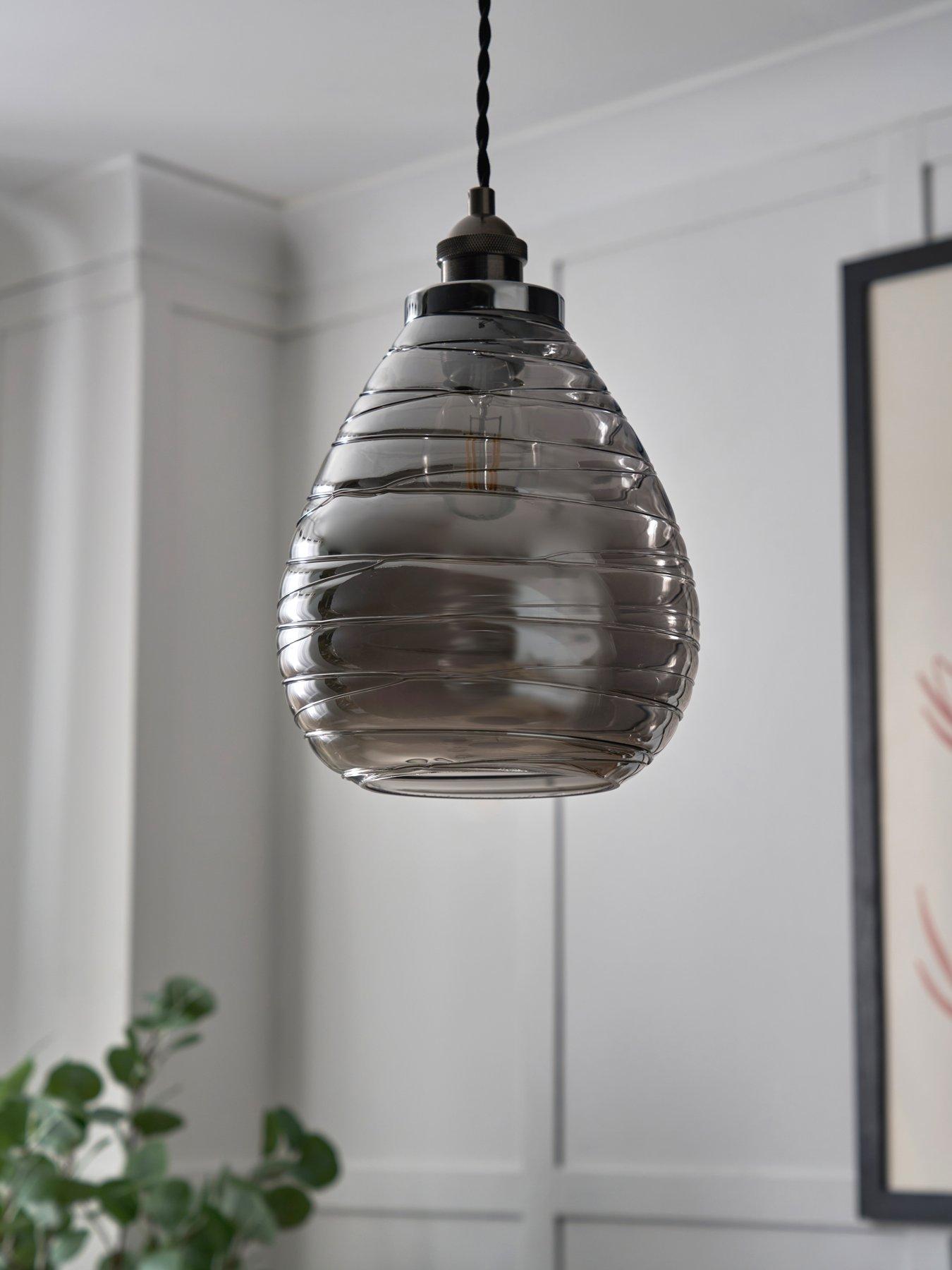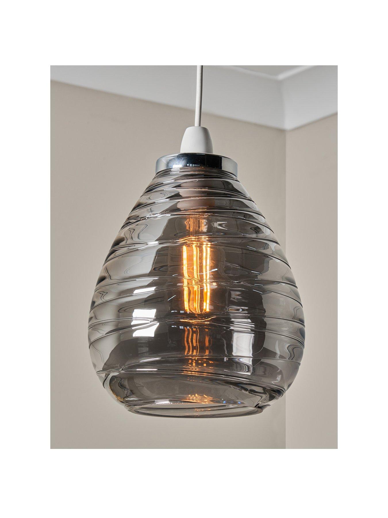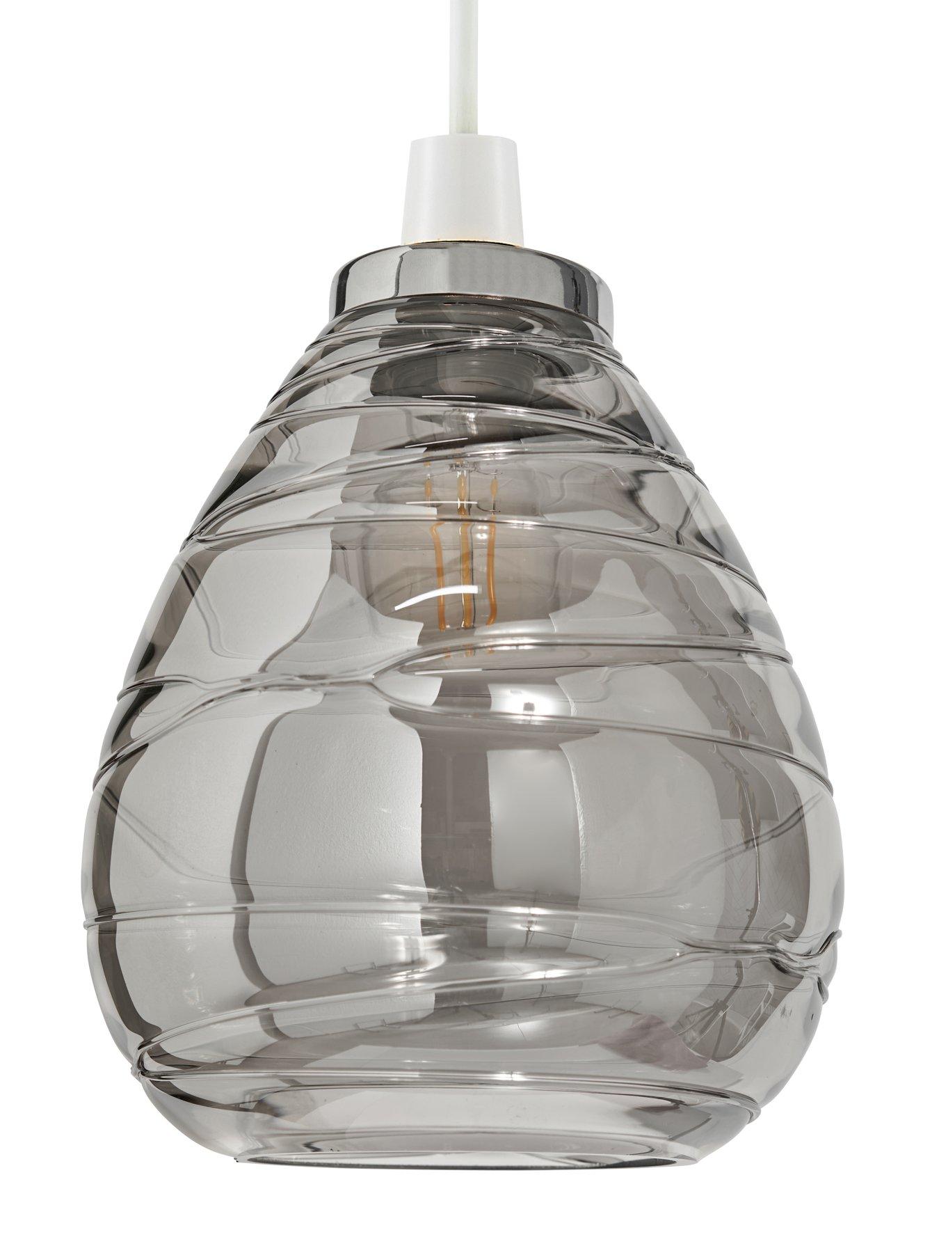 Very Home Lucie Easy-Fit Light ShadeThe Lucie Easy-Fit Light Shade from Very Home is a stunning expression of modern art-inspired elegance.Beautifully crafted from glass with a translucent smoky finish, its drizzle design sees swirling lines reaching all around the exterior for a light-catching touch of texture. An easy-fit design means you can see the effect this shade has on your space straight away, with no need for additional wiring or professional installation. Hang in a contemporary room setting to build a bold visual that’s set to impress.