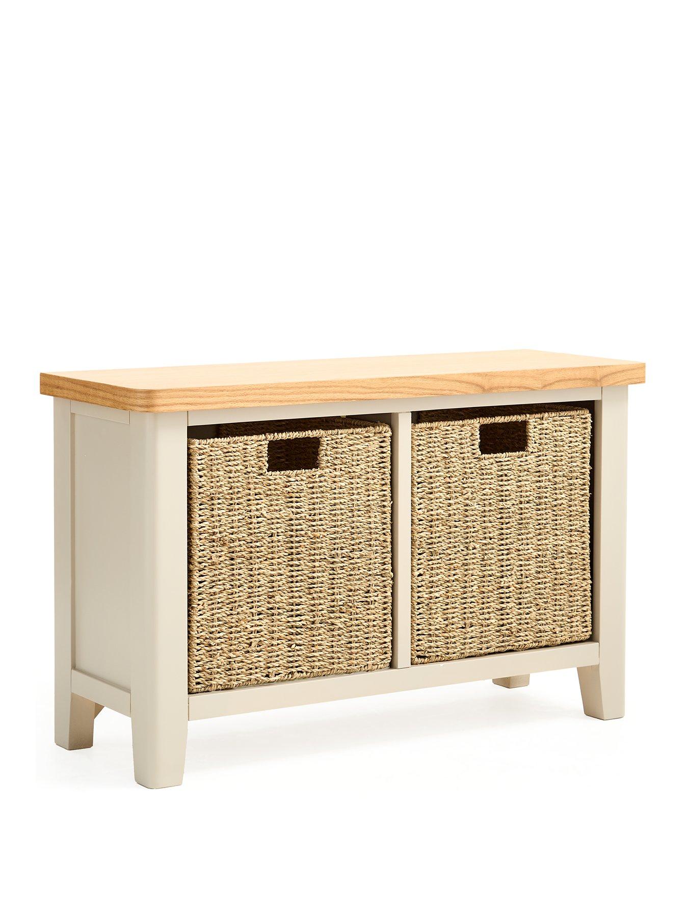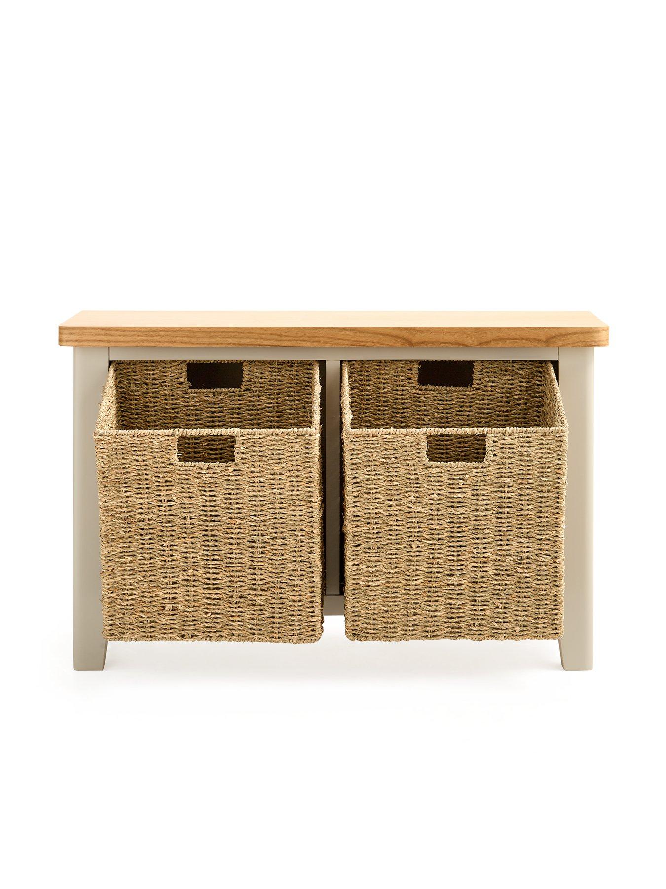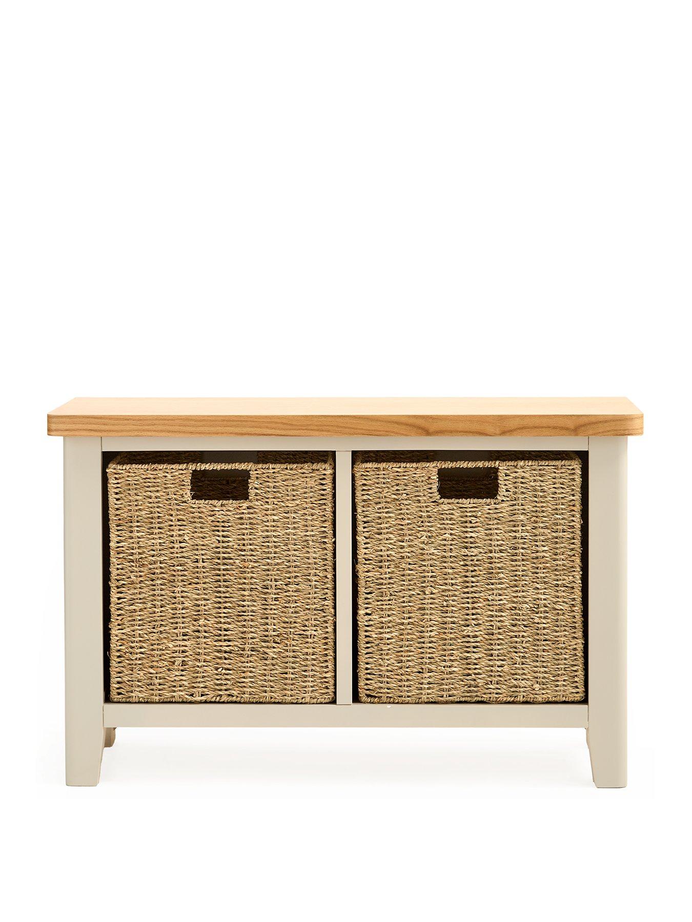 Very Home Malone Hall Bench with 2 Baskets in Grey/Oak - contains Solid WoodCrafted from a combination of solid pine, solid acacia wood and sturdy MDF, this all benchj comes from Very Home's Malone collection of furniture. Measuring 80 cm wide, it will be delivered ready assembled for the ultimate convenience, allowing you to see how good it looks right away.Flaunting a fab country cottage aesthetic, its base is designed with chunky proportions and a painted grey shade that will sit smoothly with all sorts of decors. The contrasting top has a wood-effect finish to give the furniture a two-tone appearance. Ideal for sitting on when putting on your footwear, it comes with a pair of woven baskets you can use to store away shoes, trainers and more. Get the Malone look with matching furniture in this collection which is all available separately. Please remember to measure your available space before ordering. Dimensions: Height 50, Width 80, Depth 30 cm