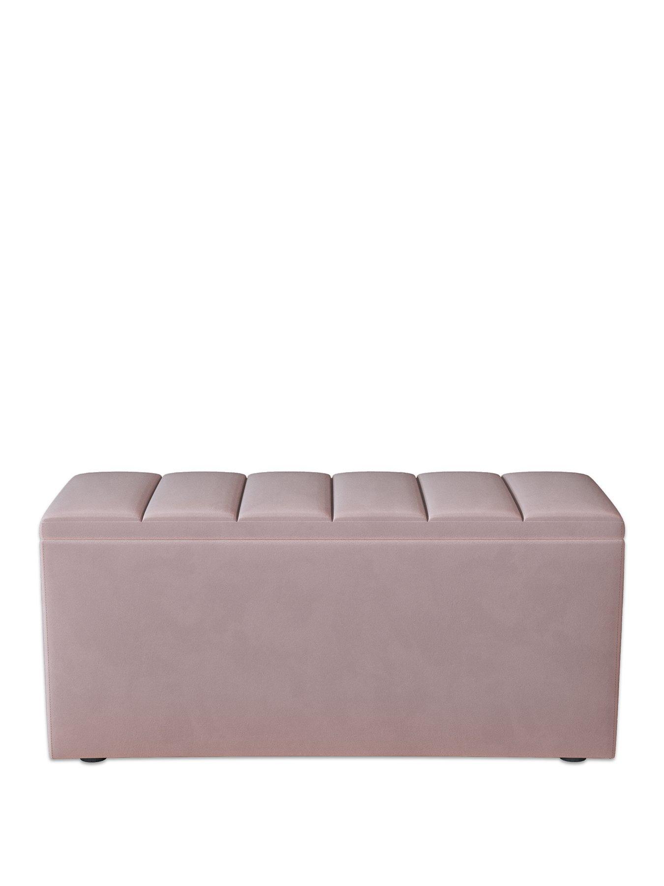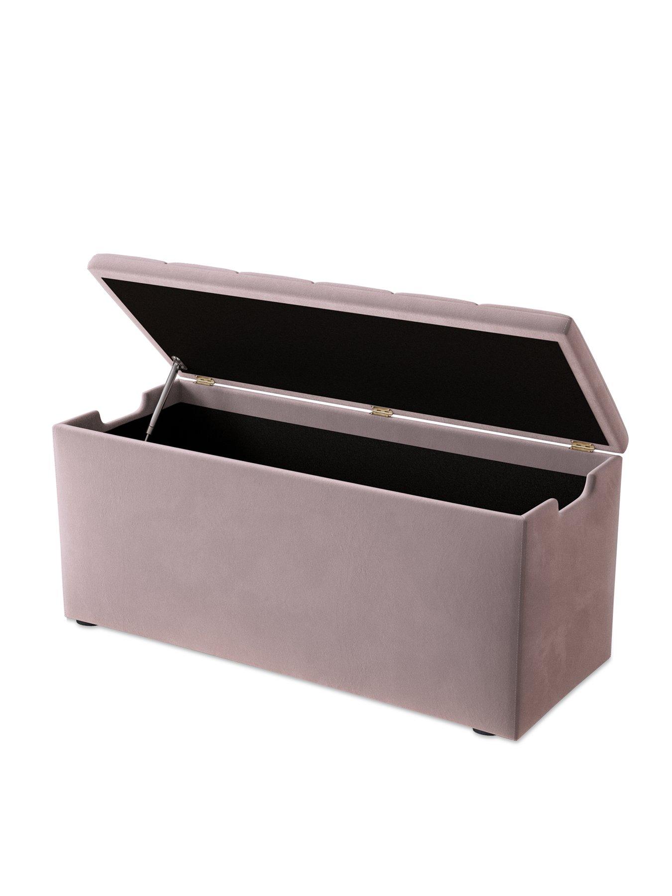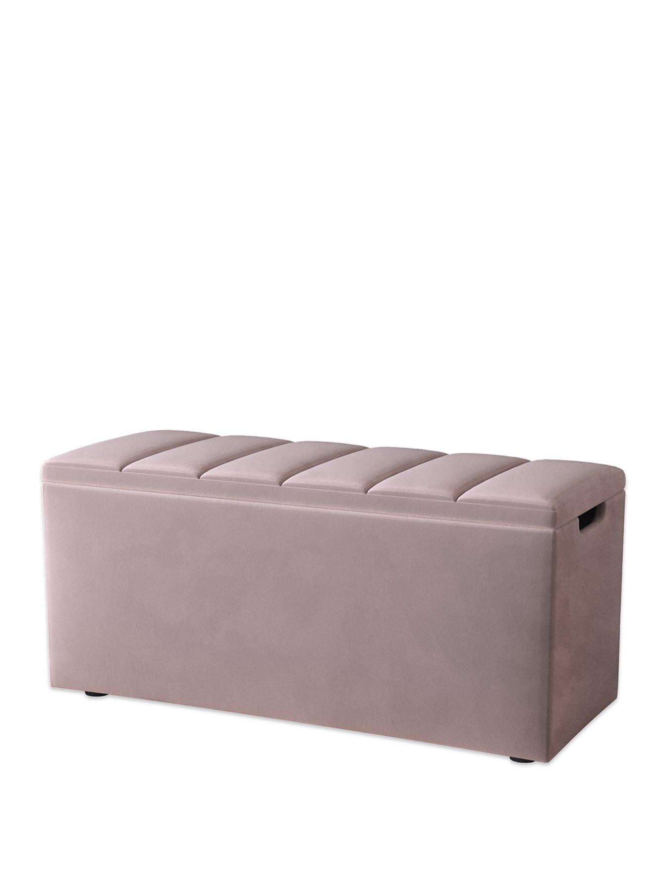 Very Home New Dakota Ottoman in Antique Rose, Natural, Grey or BluePerfect for sitting at the end of your bed, this Dakota ottoman from Very Home gives you a stylish space to store away blankets, pillows and other essentials, freeing up valuable space in wardrobes and drawers.Wrapped in a soft and hard-wearing fabric, it's available in a choice of antique rose, natural, grey or blue, so you can choose a neutral tone or something a little sunnier to suit your bedroom. The top is padded and flaunts decorative panelling, and it creates a comfortable seating area in your sleep space. An anti-slam mechanism prevents the top from falling closed, while cut-out sections on the side make it easy to open. Please remember to measure your available space before ordering. Dimensions: Height 48.5, Width 101.5, Depth 41.5 cm