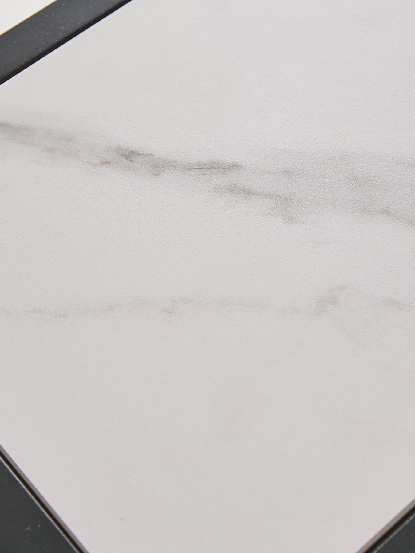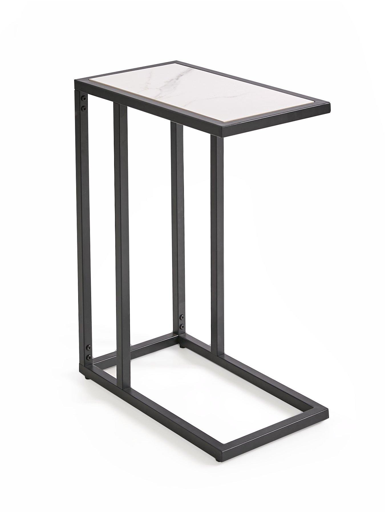 The Very Collection Oran Sofa Side Table in White/Black - FSC® CertifiedMade from black metal with a white marble-effect top, this table can be used as a side table for the sofa or an armchair - great for showing off a lamp, vase or other decorative fave. And because of its clever shape, the base can slide under the furniture so you can sit it directly over your lap when you want to eat in front of the TV or WFS (work from sofa!).Please remember to measure your available space before ordering. Dimensions: Height 59.2, Width 45, Depth 25 cm