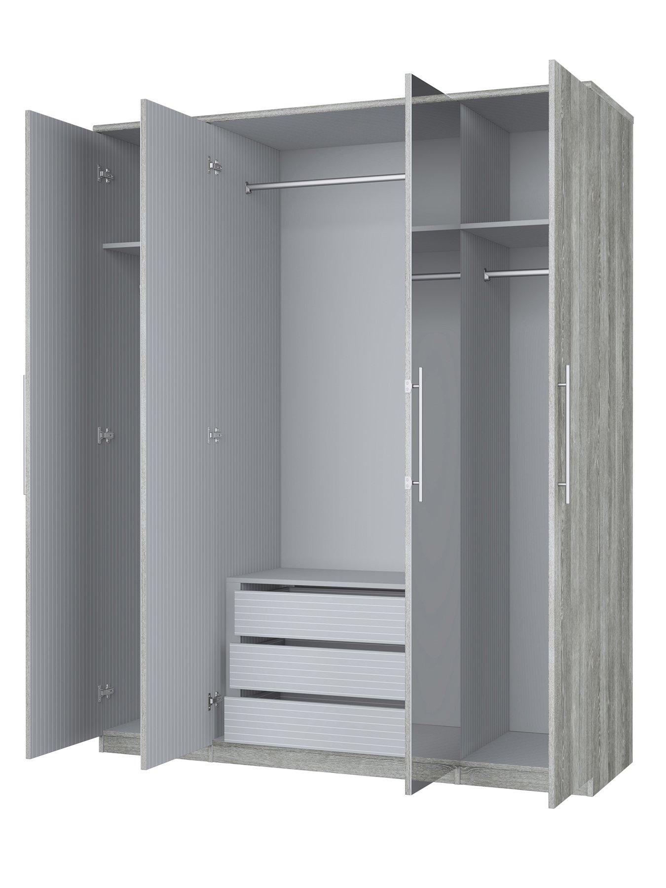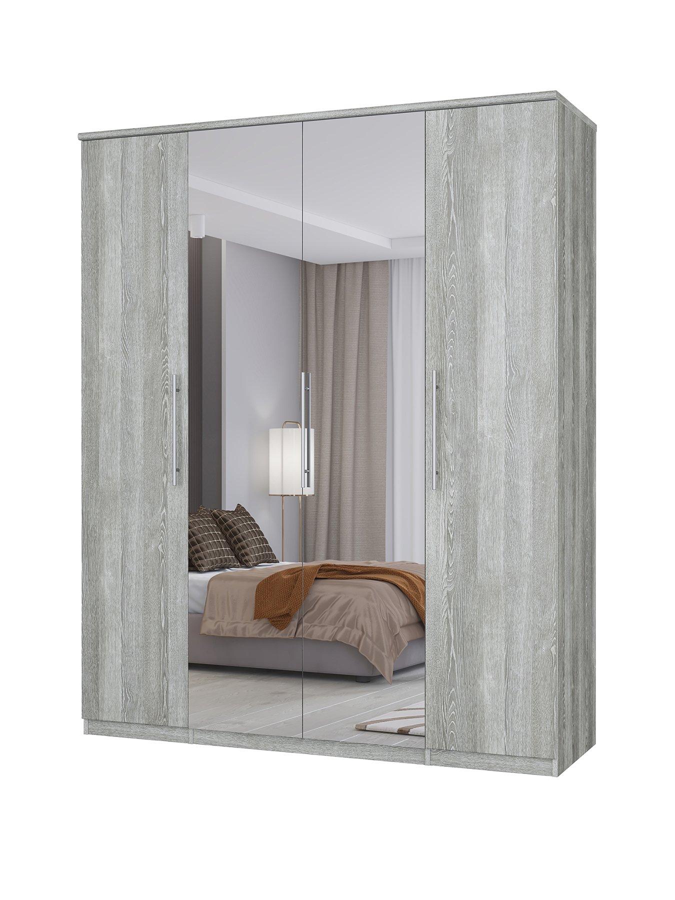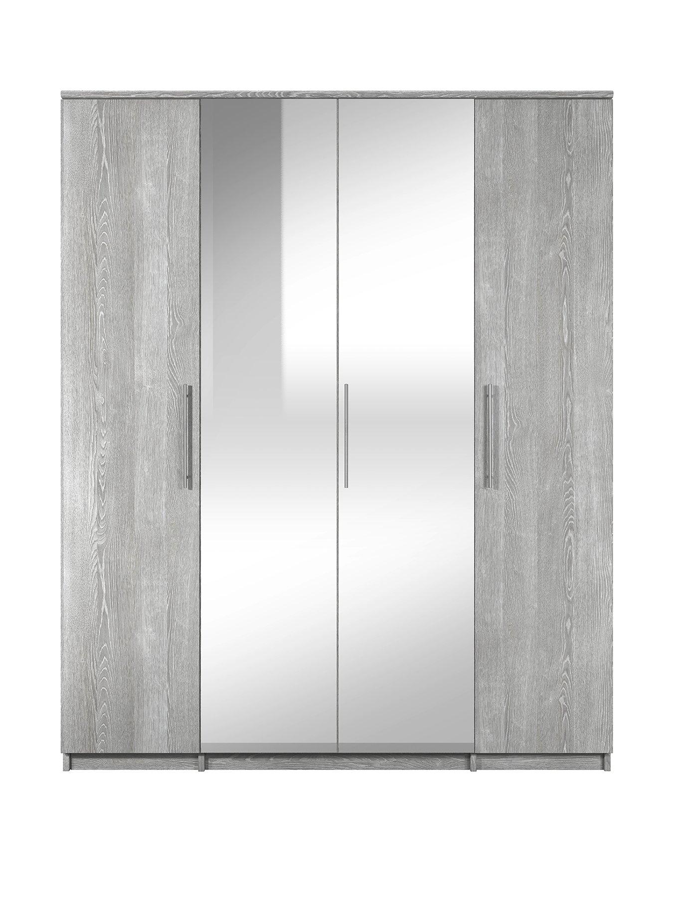 Very Home Prague 4 Door Wardrobe With Mirrors - FSC® CertifiedWith an updated wood-effect finish that provides even more clarity and grain detail, this wardrobe takes the Prague bedroom furniture range to even more stylish heights.Available in new white, black ash, new oak-effect or grey, they're all finished with modern metal bar handles. A hanging rail and upper shelf on either side are complemented by a middle area that features a wider hanging rail and 3 drawers that sit on easy-glide metal runners.