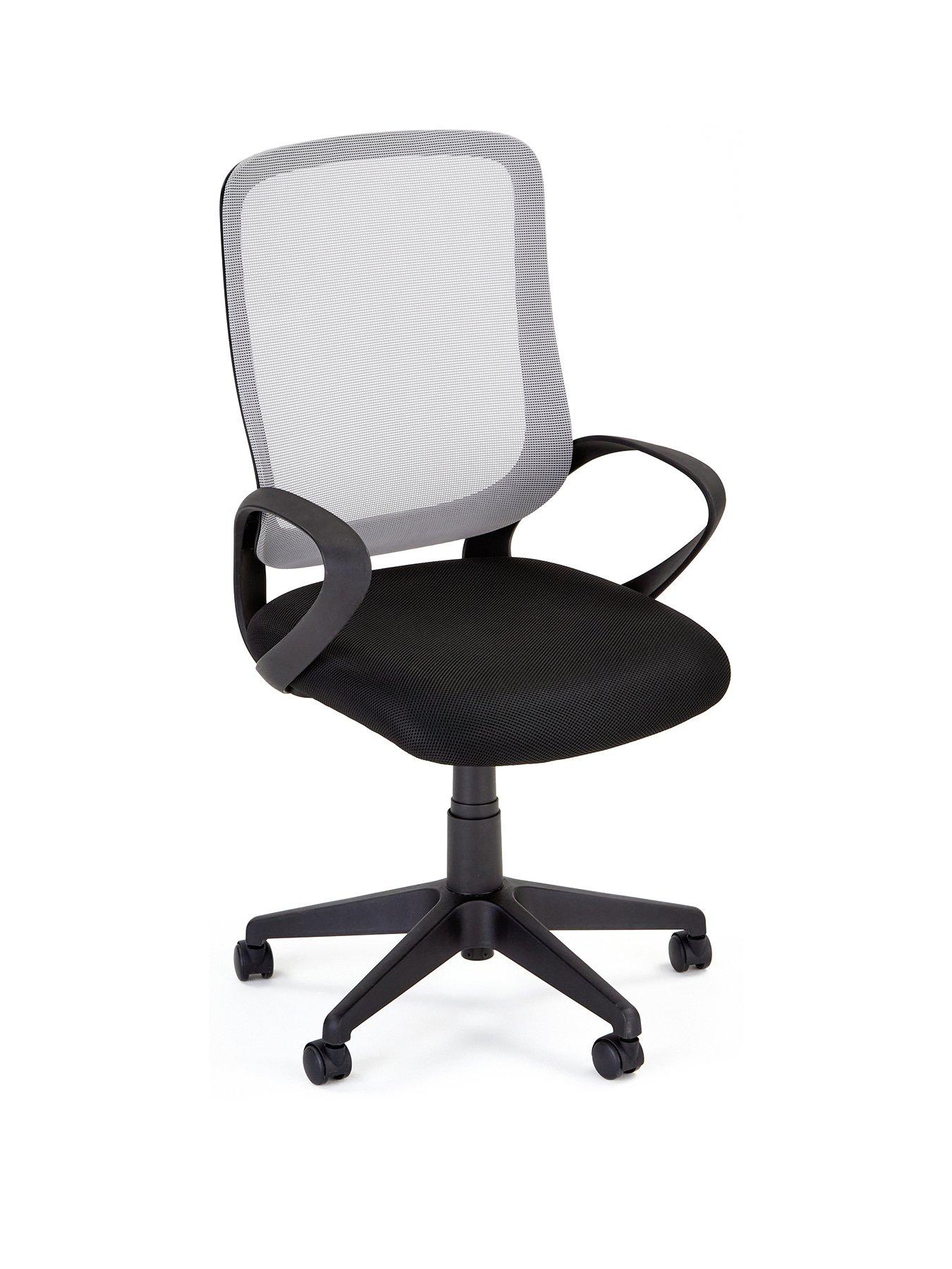 Very Home Raina Office Chair in Black - FSC® CertifiedAmazing value for money, this Raina office chair from Very Home comes in a smart black shade for a contemporary work space.The modern design features super stylish arms and a mesh back rest that allows air to circulate freely. The cushioned seat has been upholstered in a textural fabric, and to help you find your perfect position at your desk it's height adjustable between 98.5 and 108 cm. Dimensions: Height 98.5-108, Width 60.5, Depth 57.5 cm