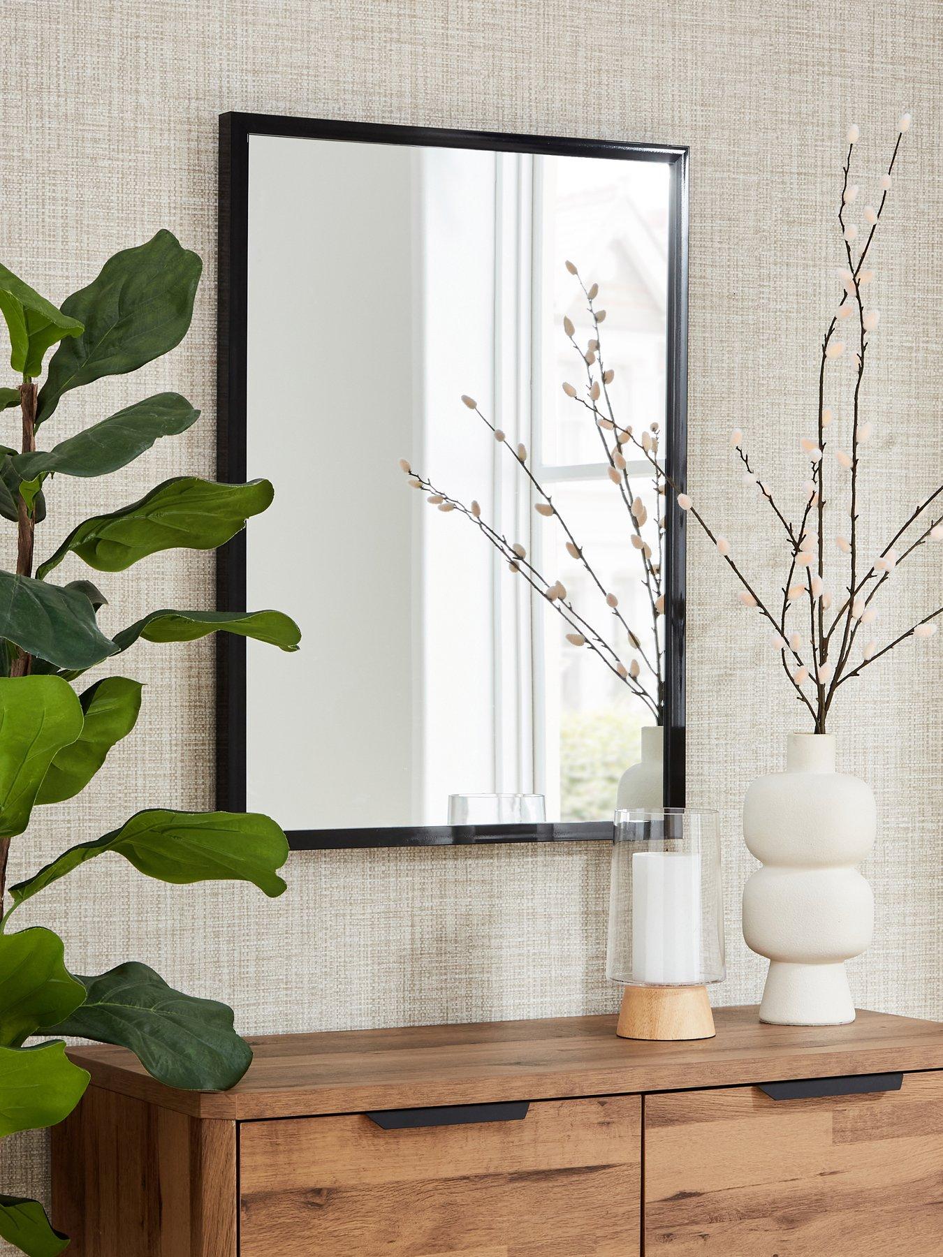 Rectangular Mirror - Black 53x73cmDIMENSIONSThe size of the black wall mirror is 53x73CM. FRAME DESIGN The wall mirror with very thin mouldings will show you a simple style and is the perfect size for any wall in your home. Plus the PS frame will prevent the mirror from being deformed. EASY TO INSTALL Two D-rings on the back of the wall mirror. It can be easily installed without additional tools.