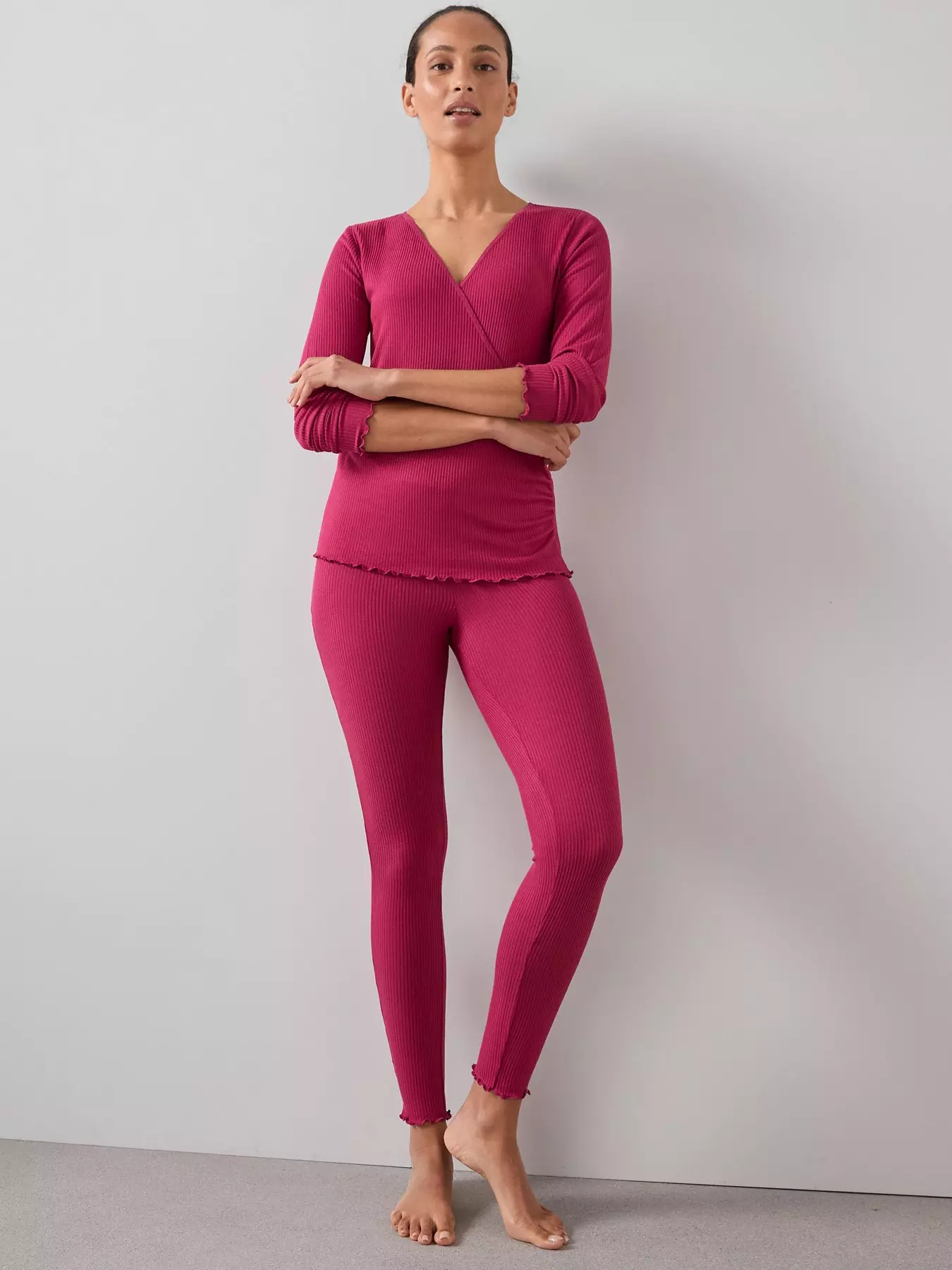 The Very Collection Ribbed Wrap Front Long Sleeve Top And Legging Pj Set