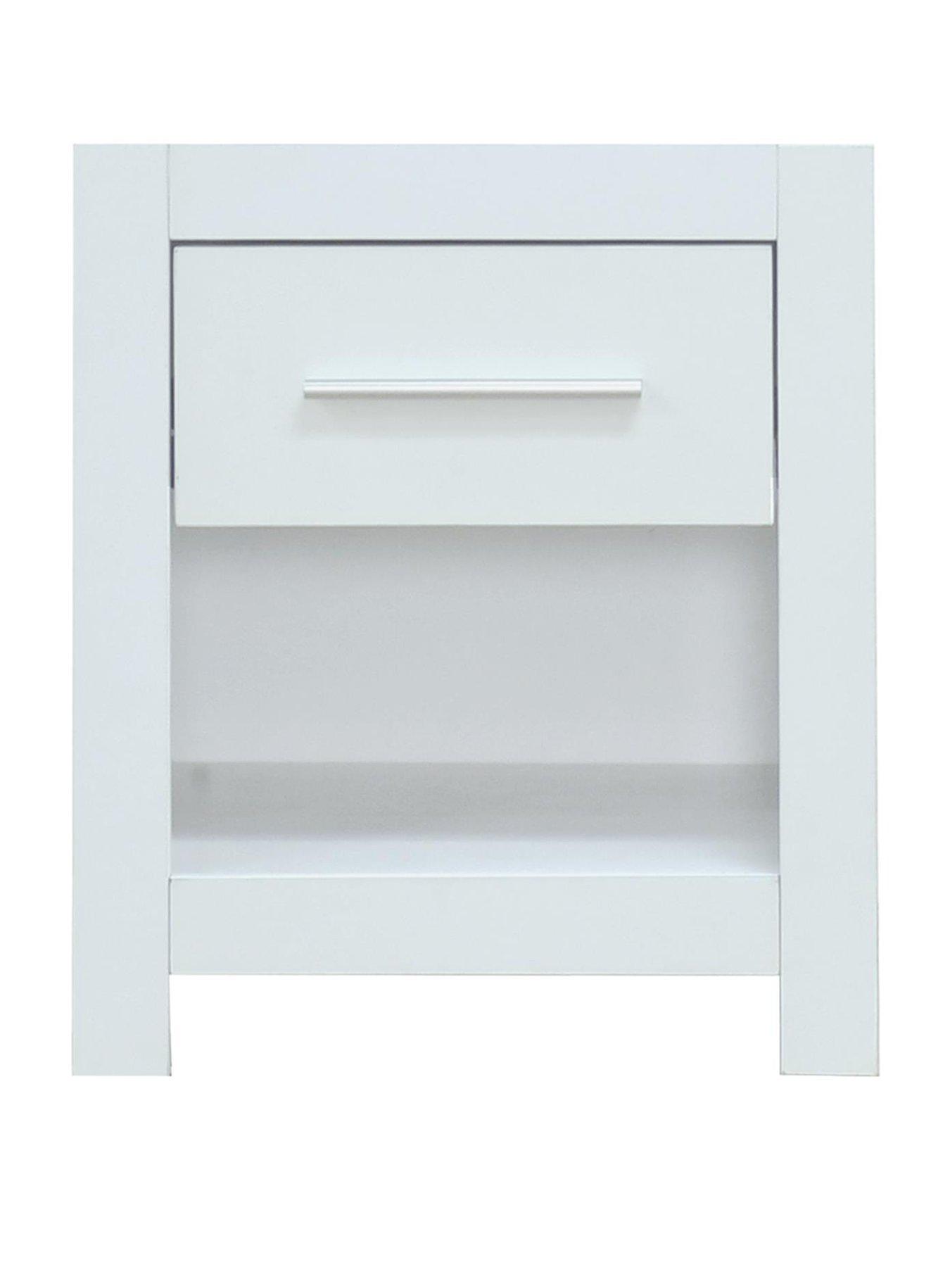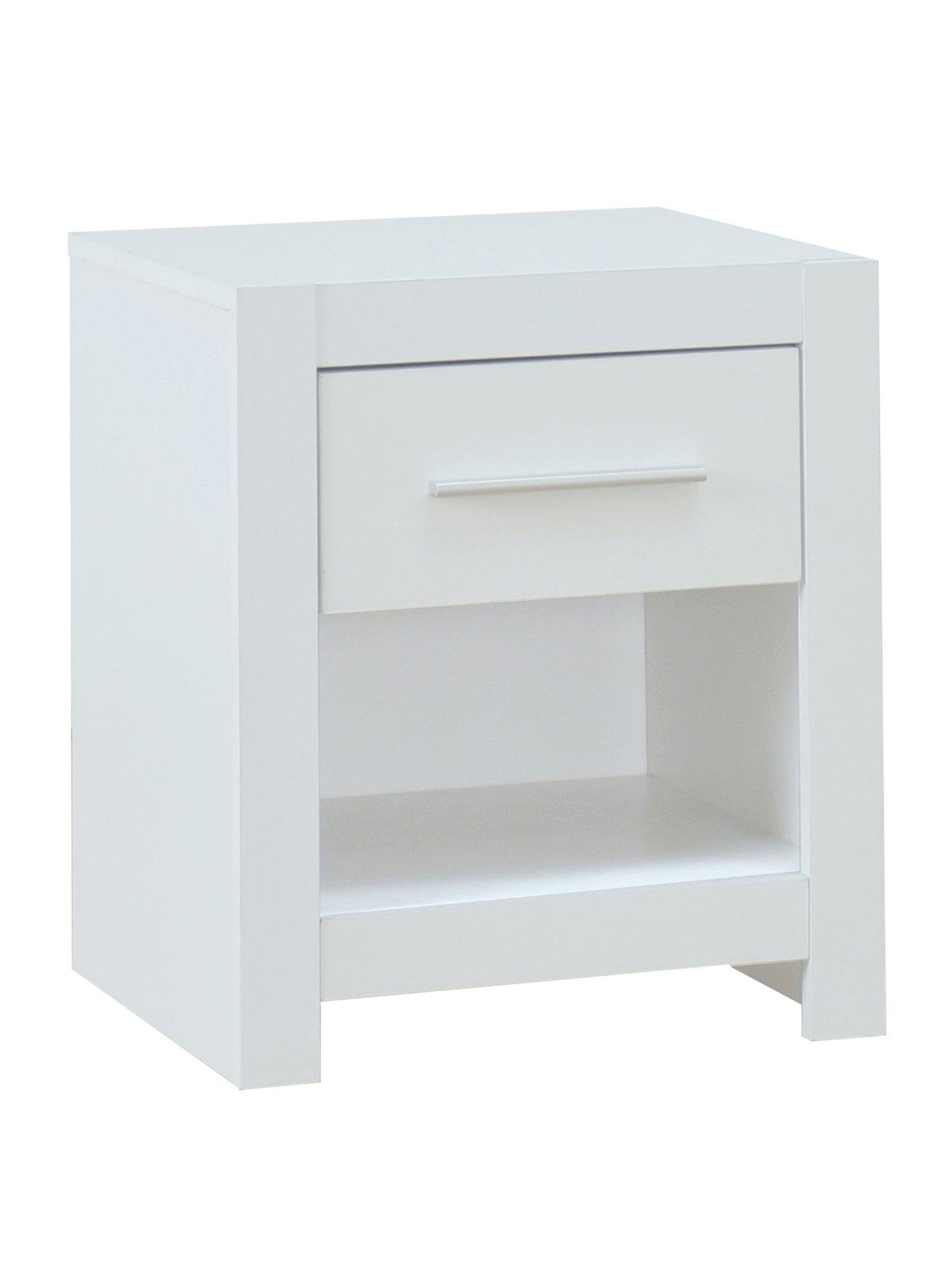 Very Home Rio 1 Drawer Bedside Chest in White or Grey - FSC® CertifiedBrilliantly priced for such a striking piece of bedroom furniture, this bedside chest is part of Very Home's new Rio collection.Its attention-grabbing design comes from the chunky proportions of the top, shelf and sides which ensure the clean, straight lines of the profile stand out brilliantly. It also helps highlight the smooth choice of hues - go-with-everything grey and room-refreshing white. The 42 cm wide top creates a smart platform for your lamp, alarm clock and other bedside essentials, while an open cubby is just right for books, ornaments or an attractive storage basket. And for all those bits of clutter you want to keep out of sight, there's also a single drawer that glides effortlessly (and quietly!) open on metal runners, so even when it's full you don't have to worry about waking your partner when you reach for your phone charger late at night. The drawer is finished with a designer-style wide metal handle in a shiny silver shade, and matching pieces in the Rio range are available to add separately. Please remember to measure your available space before ordering. Dimensions: Height 48.8, Width 42.3, Depth 38.5 cm