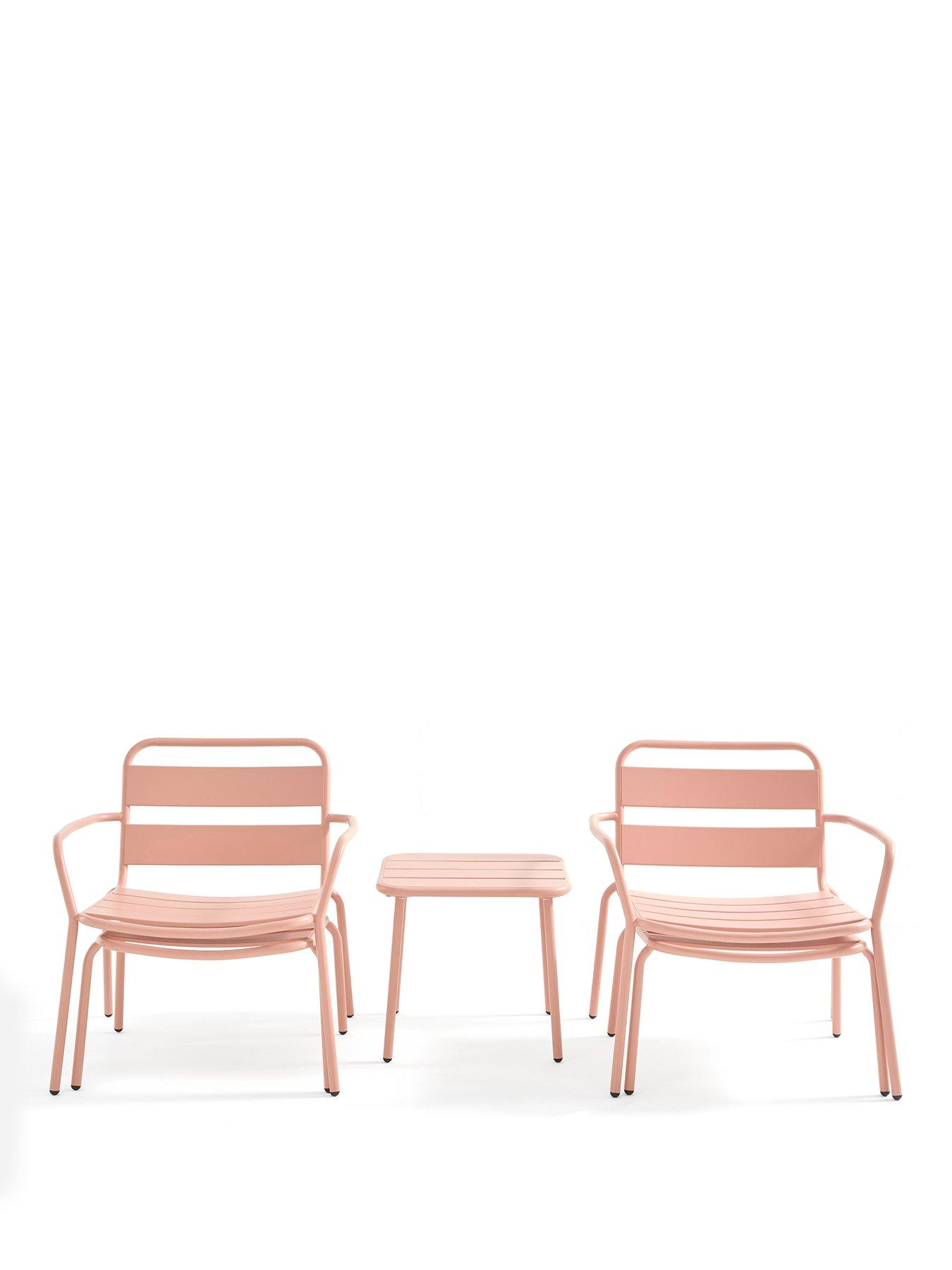 The Very Collection Riviera Bistro Set With Footstools - PeachFormed of five pieces, features two armchairs, two footstools and a matching coffee table. With sturdy steel frame and bright colour. You can put your feet on the footstool, or use it as an extra seat. This garden sofa set is a fantastic combination, comfortable and minimal hassle.