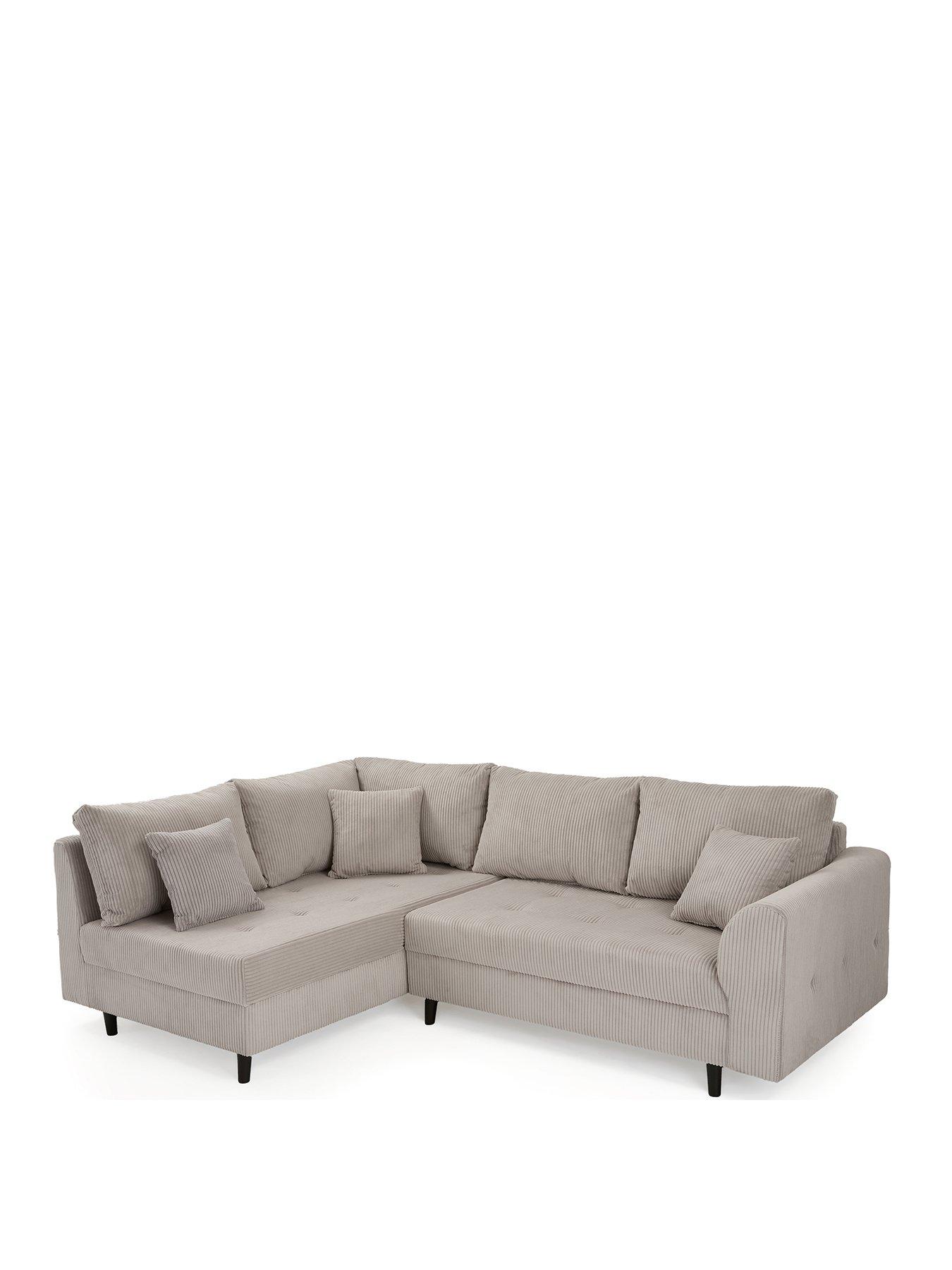 The Very Collection Rune Cord Left Hand Corner Group Sofa in Natural or GreyH 81 x W 231 x D 161 cmChunky cord In a choice of natural or grey colour options, this corner group features chunky cord fabric that gives the furniture a wonderfully textural feel you'll love relaxing on. Detailed with pinching to the seat cushions and black cylindrical legs for a modern finish. Seats are filled with foam and fibre, and are fixed neatly in place, while foam and fibre filled back cushions are removable and reversible for even wear and easy plumping (do this regularly to maintain their shape). Free Swatch Service Get a feel for this fabric before you buy with our FREE swatch service. Simply email SwatchOrder@ClickSpares.co.uk with your name and address, along with the sofa range name, item number, colour choice and the name of the retailer’s website you’re ordering from. Your swatches will be delivered within 5 working days (subject to availability). Please remember to measure your available space before ordering. Dimensions: Height 81, Width 231, Depth 161 cm