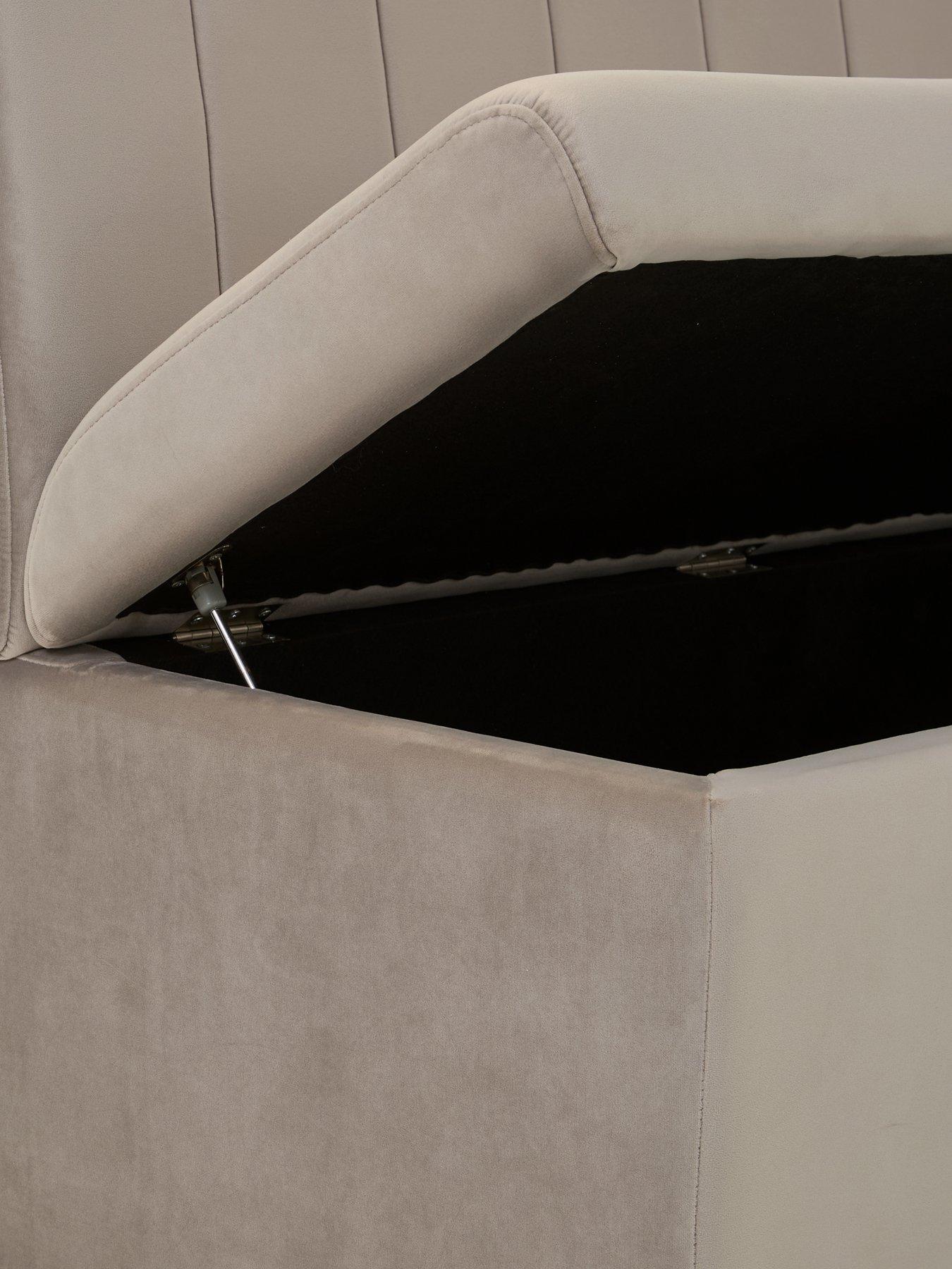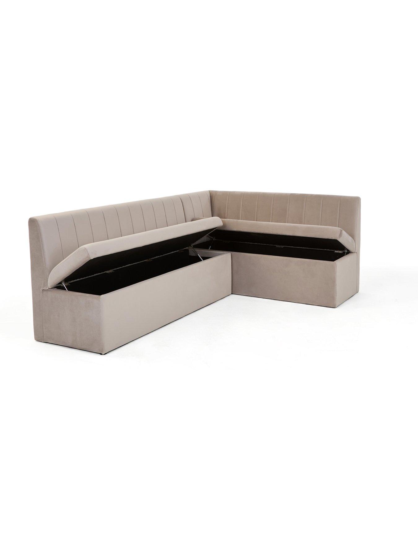 The Very Collection Sander Corner Storage Booth in GreyThe Sander corner storage booth that lets you sit comfortably and stow away clutter or dining essentials. In a grey fabric, it's detailed with vertical stitching to the back cushion.Please remember to measure your available space before ordering. Dimensions: Height 88, Width 240, Depth 165 cm