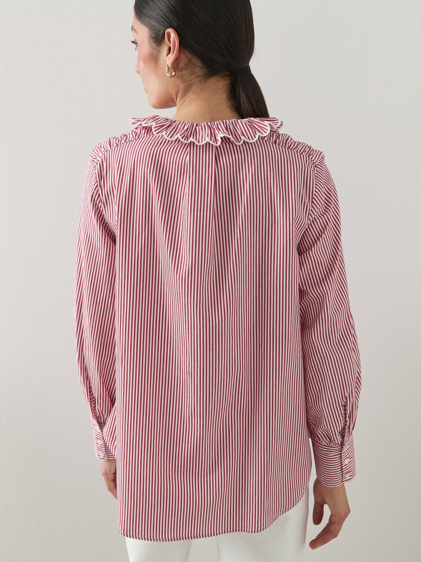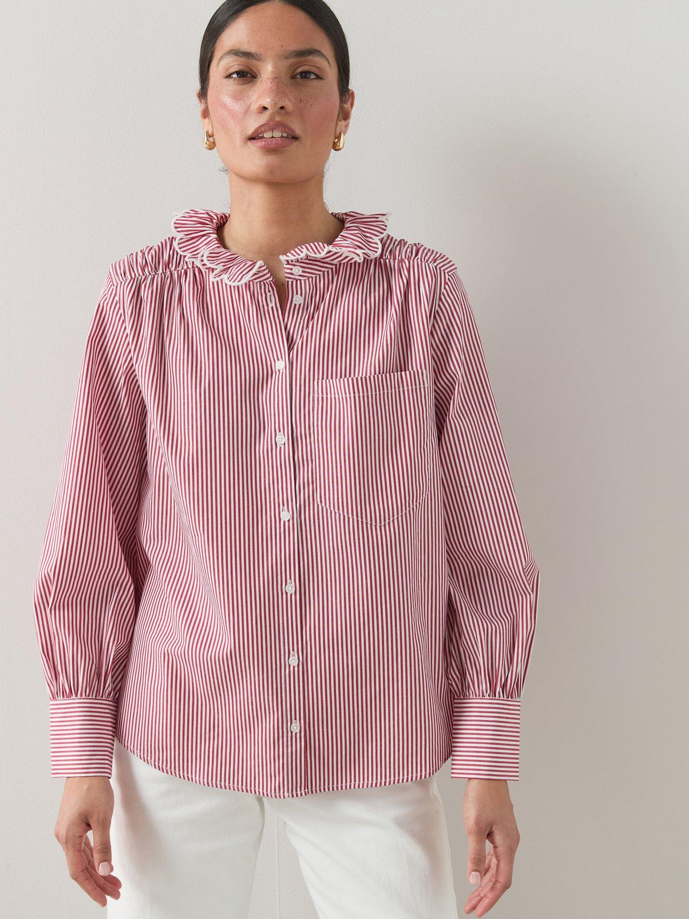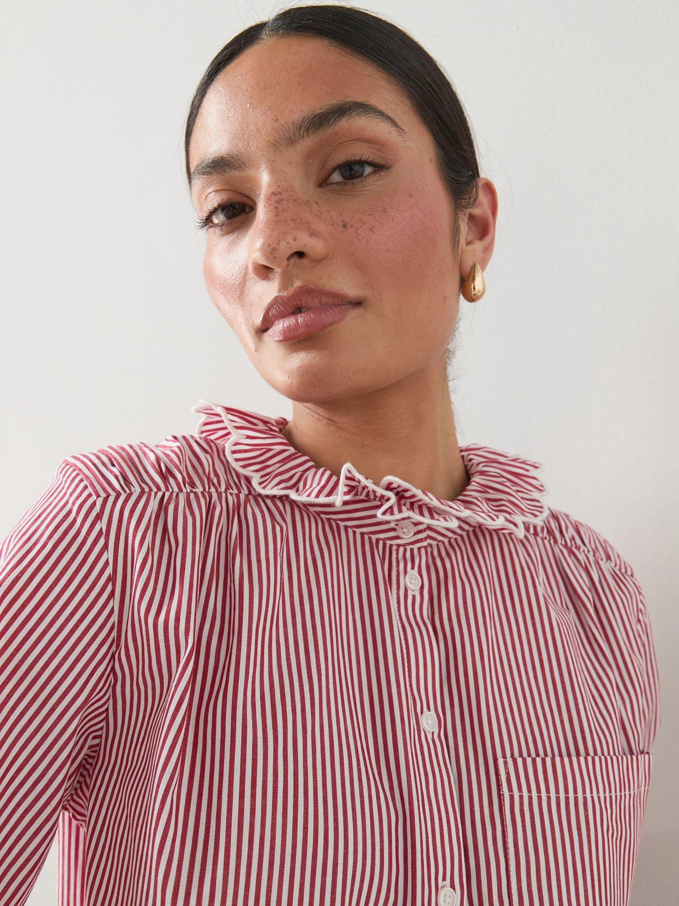 The Very Collection Scollaped Frill Stripe Button Up Shirt