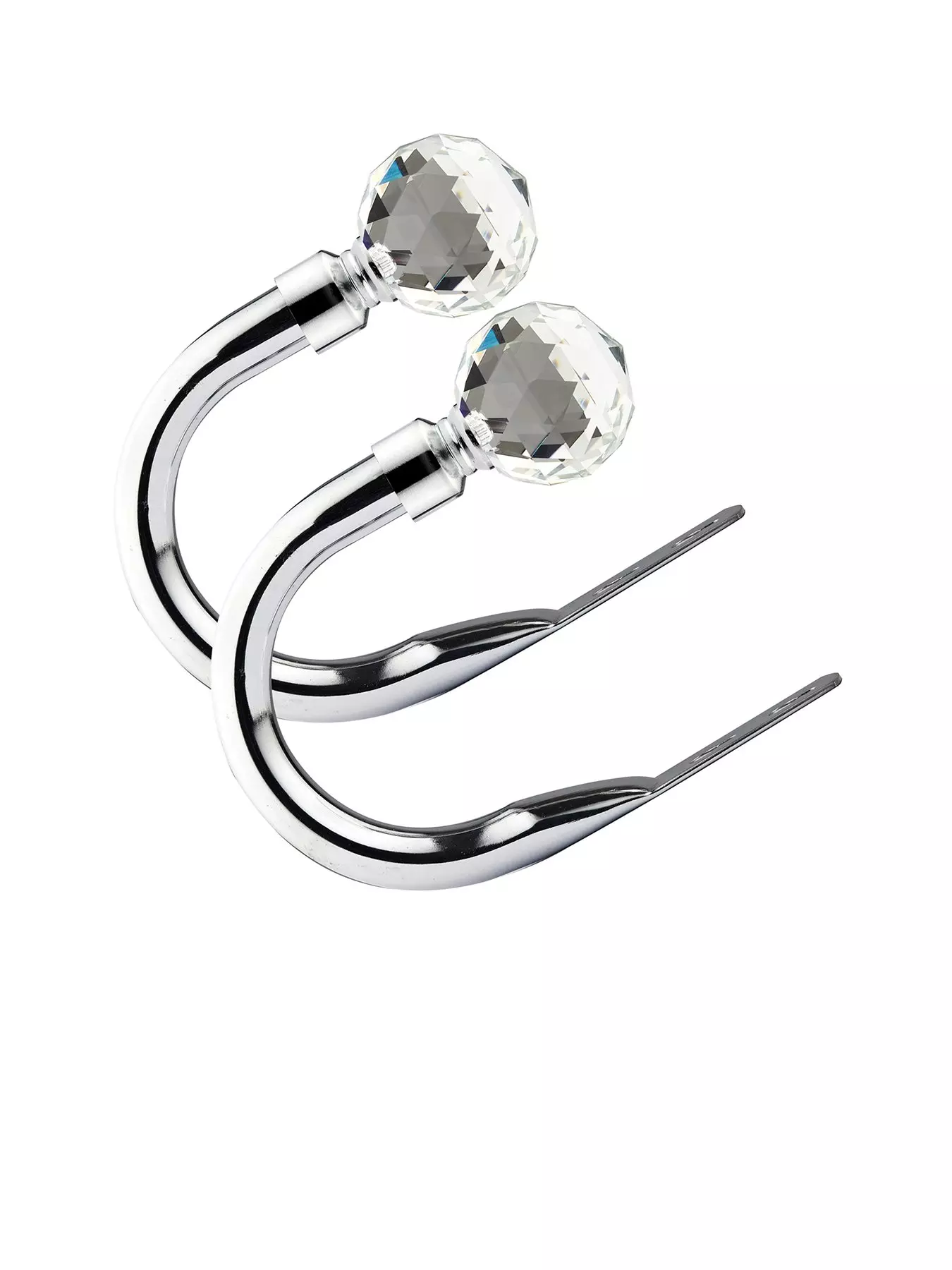 Keep your curtains neat and tidy when open with this pair of crystal finial holdbacks.Designed with sparkling sophistication in mind, they’re crafted from rust and corrosion-proof metal and available in a choice of two finishes – chrome and matt black – to suit your space. Both options are brought to life by a faceted crystal finial, giving them an opulent appearance that’s perfect for contemporary room settings.