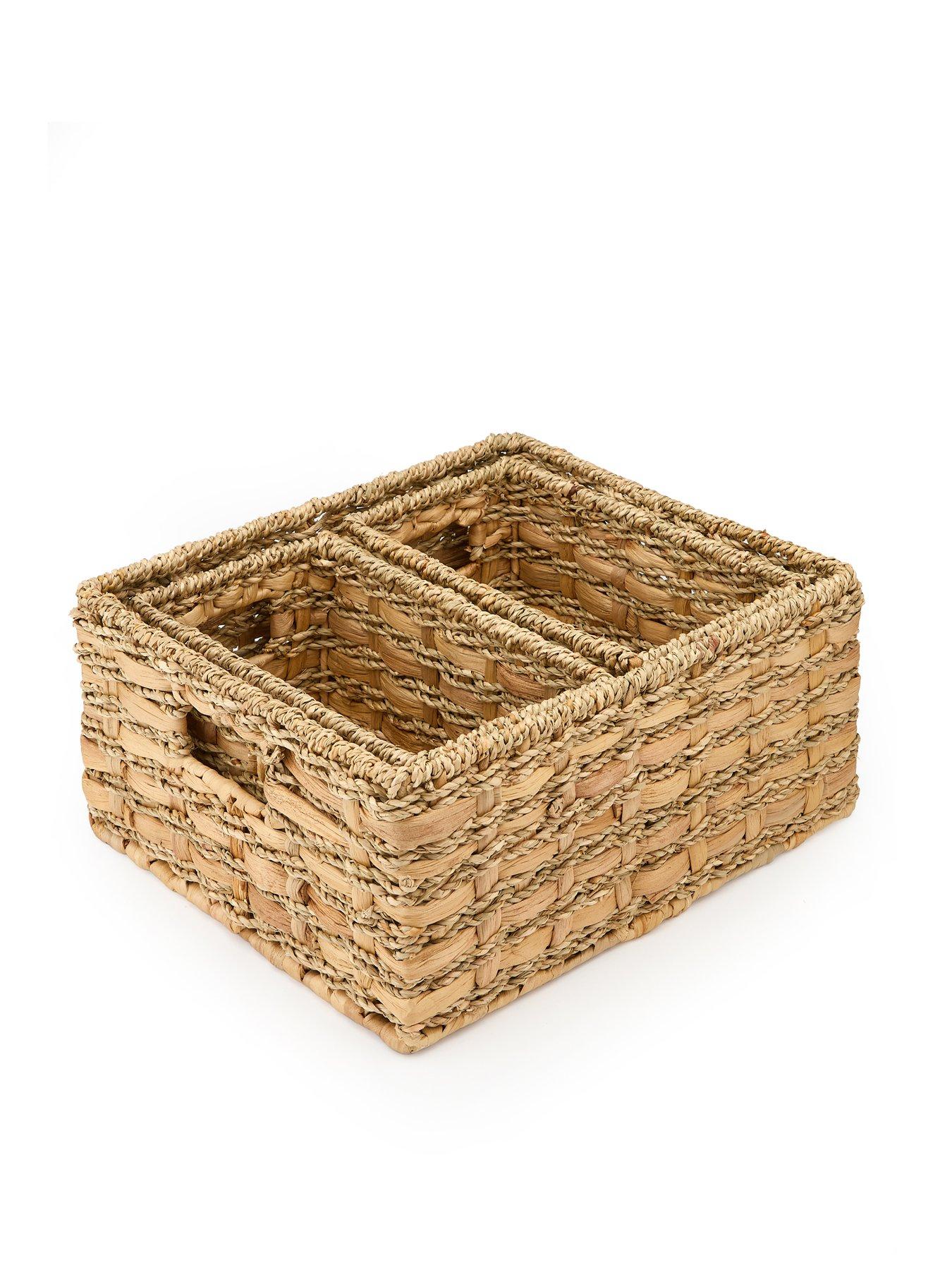 The Very Collection Set of 3 Rectangle Nesting BasketsBring natural beauty and practical storage to your space with this charming set of handwoven baskets. Expertly crafted from seagrass and water hyacinth, these baskets offer a rustic yet refined look that blends effortlessly with any decor style.Perfect for organizing documents, books, or everyday essentials, this set includes one large basket with two smaller nesting trays - ideal for keeping your home tidy and stylish.