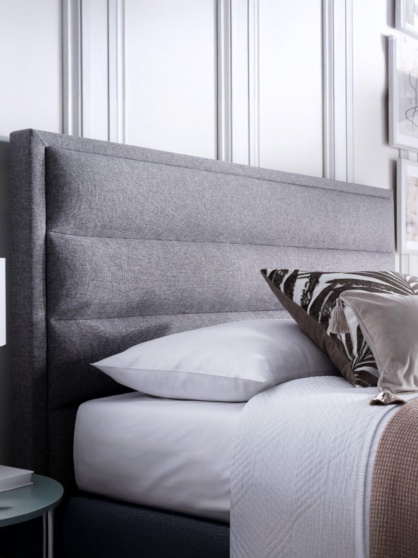 The Very Collection Sigrid Double With Ottoman StorageDesigned with an impressive horizontally panelled, slim border padded headend to floor and base with hardwood footend feet, this bedframe really is a show stopper! Offering a practical, unrestricted space saving storage solution for todays modern living requirements, hidden away in the base of the bed and fitted with an ottoman safety bar for security when accessing stored items. Upholstered in quality fabrics and made from wood from sustianable sources.