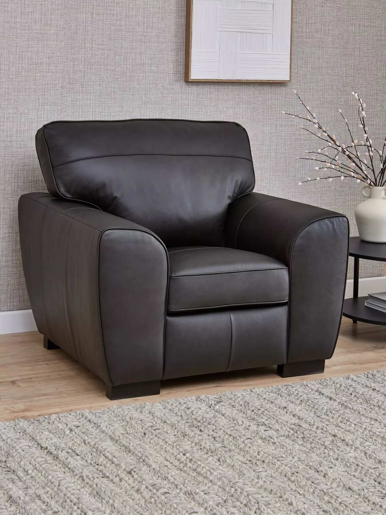 Modern and stylish, this Sona armchair is crafted from 100% premium leather which has an unmistakable feel of luxury. The classic black hue matches a wide range of decors and will look great with all kinds of accent cushions.