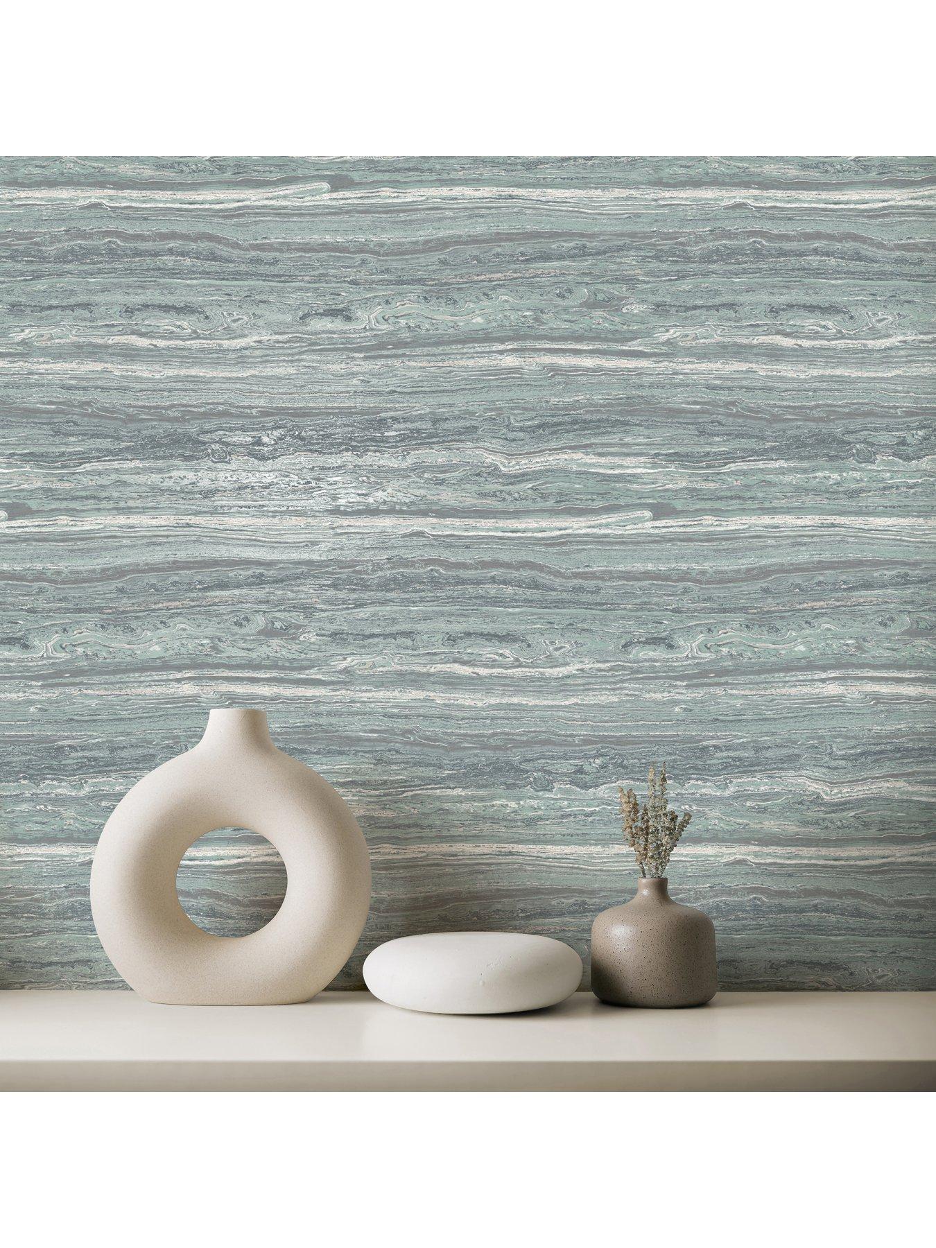 Very Home Textured Stone-abyss BlueA mineral-inspired layered stone effect showcasing natural striations and textures. Metallic highlights catch the light, adding a sophisticated shimmer that enhances the depth and richness of the design.Printed on a paste the wall substrate for easy application.