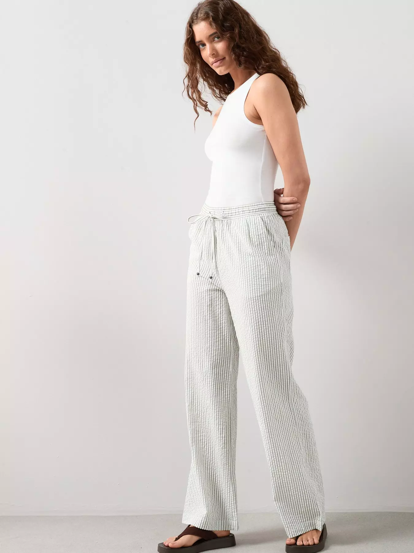 The Very CollectionTextured Wide Leg Trouser - Green Stripe