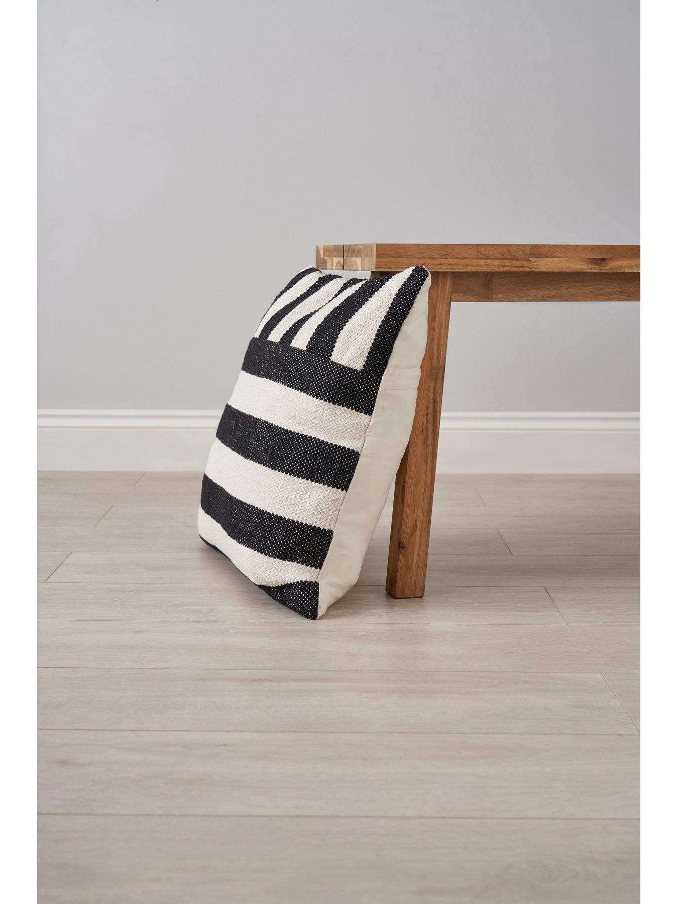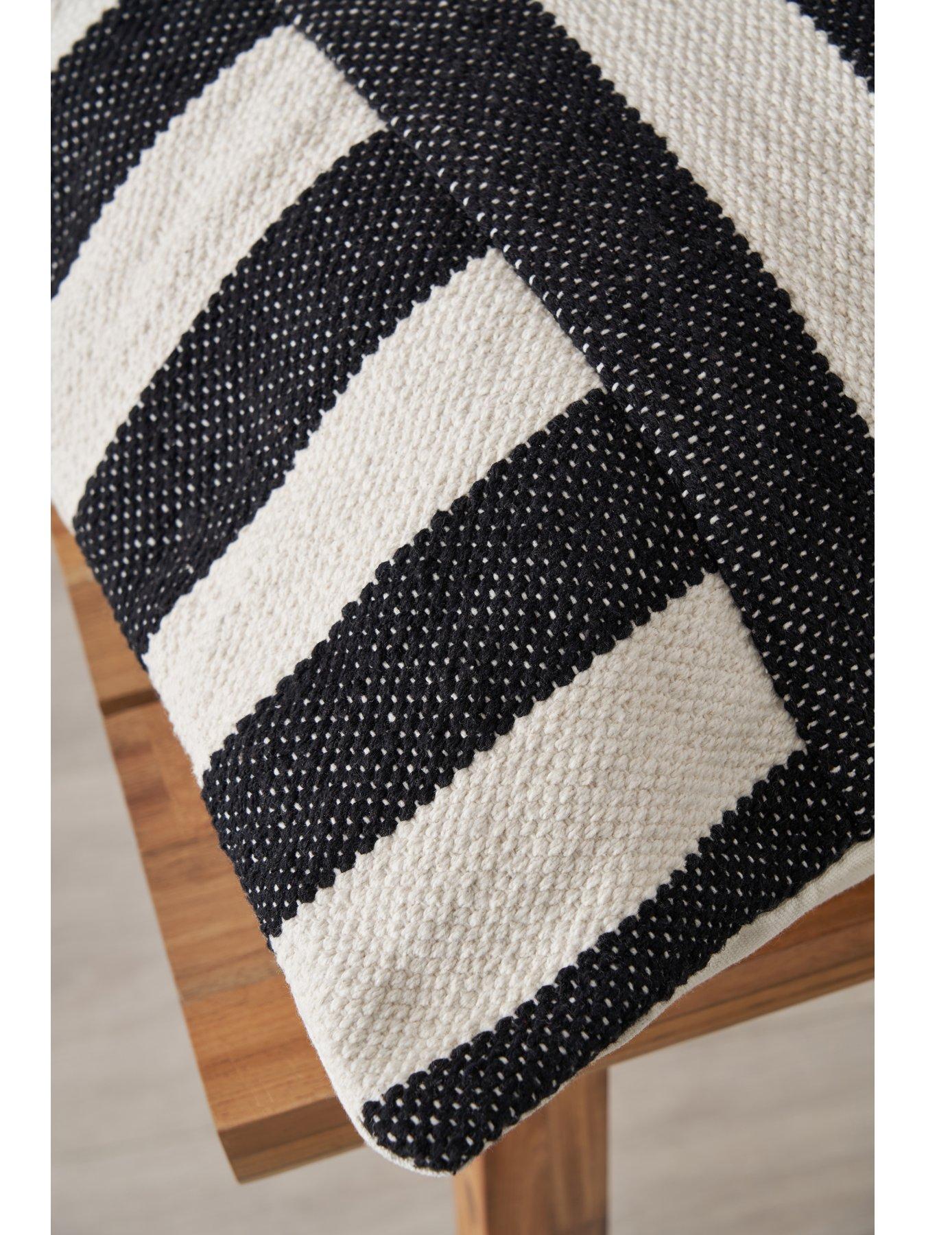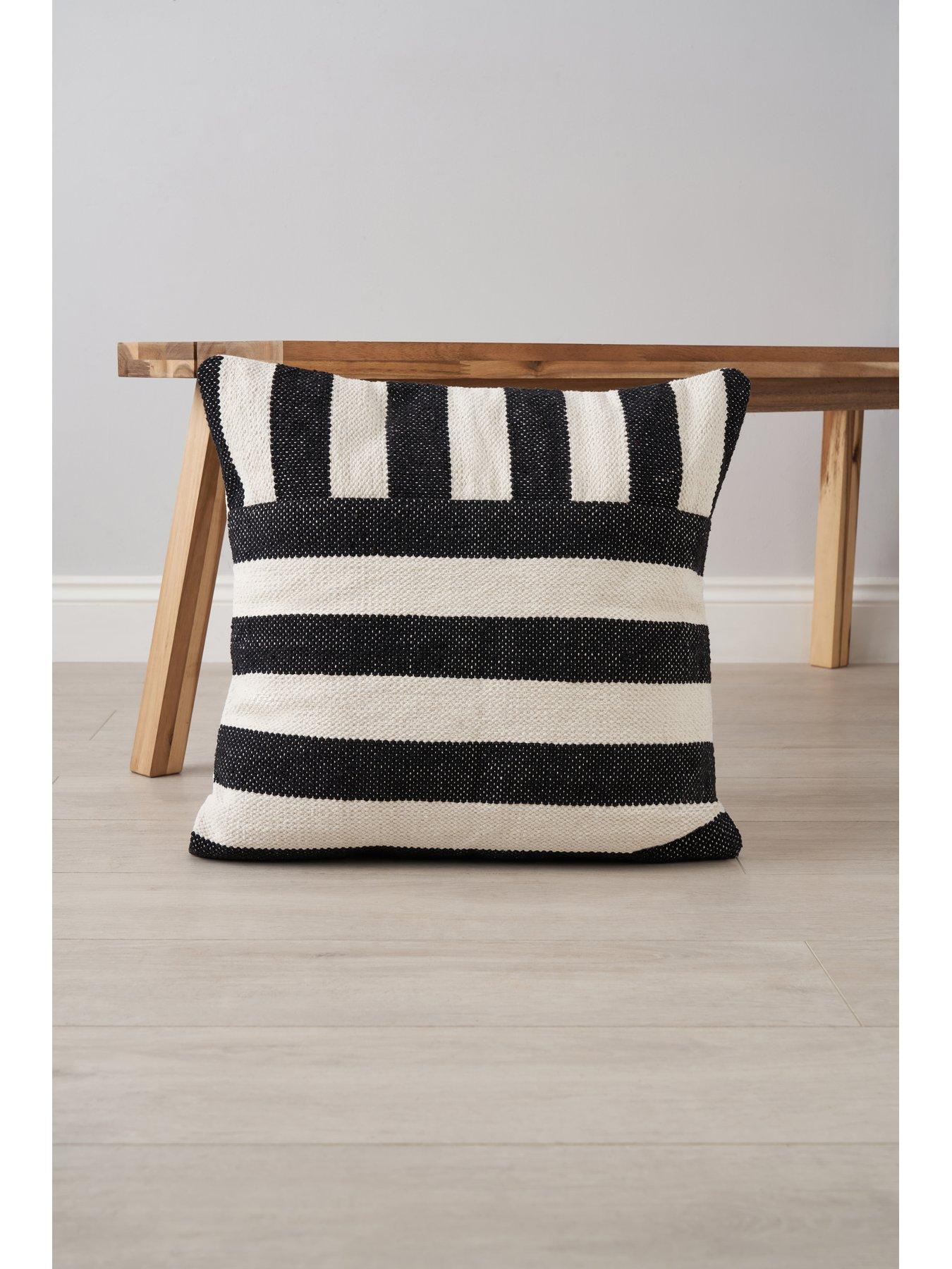 Very Home Tino Indoor/Outdoor Cushion in 3 colour options – 50 x 50 cmThe chic credentials of the Tino Cushion by Very Home make it a classy addition to your living space - whether in the home or the garden.Beautifully made from 100% cotton, it captures the attention with a unique pattern featuring chunky stripes running in two different directions. A choice of three colourways makes it easy to find the one that’s right for you. Black and navy are timeless options that work well with most palettes, while blush adds a delicate pop of colour to your space. At 50 x 50 cm, this cushion comes complete with a filler for instant comfort. Please note: although hard-wearing enough to use in the garden, this cushion is not water resistant.
