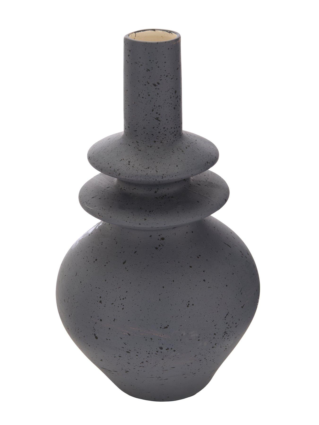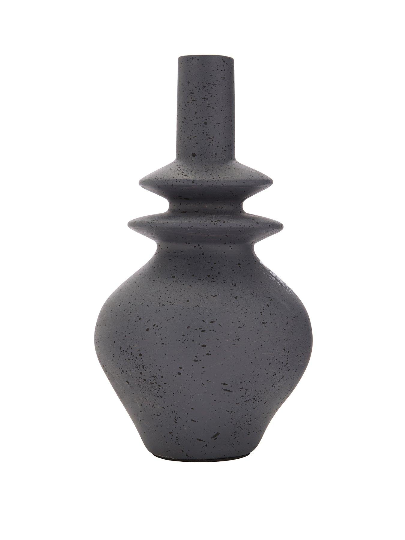 Totem Fin Vase – 35 cmTaking its inspiration from contemporary art pieces, our Totem Fin Vase has a sense of sculptural beauty that’s effortlessly eye-catching.The rounded base makes way for the incredibly unique neck of the vase, which undulates to create a wavy visual that demands the attention. Its deep and mysterious grey colourway uses speckled patterning to build depth in the design. Pop on a sideboard or shelf and for a look that’s easy to love.