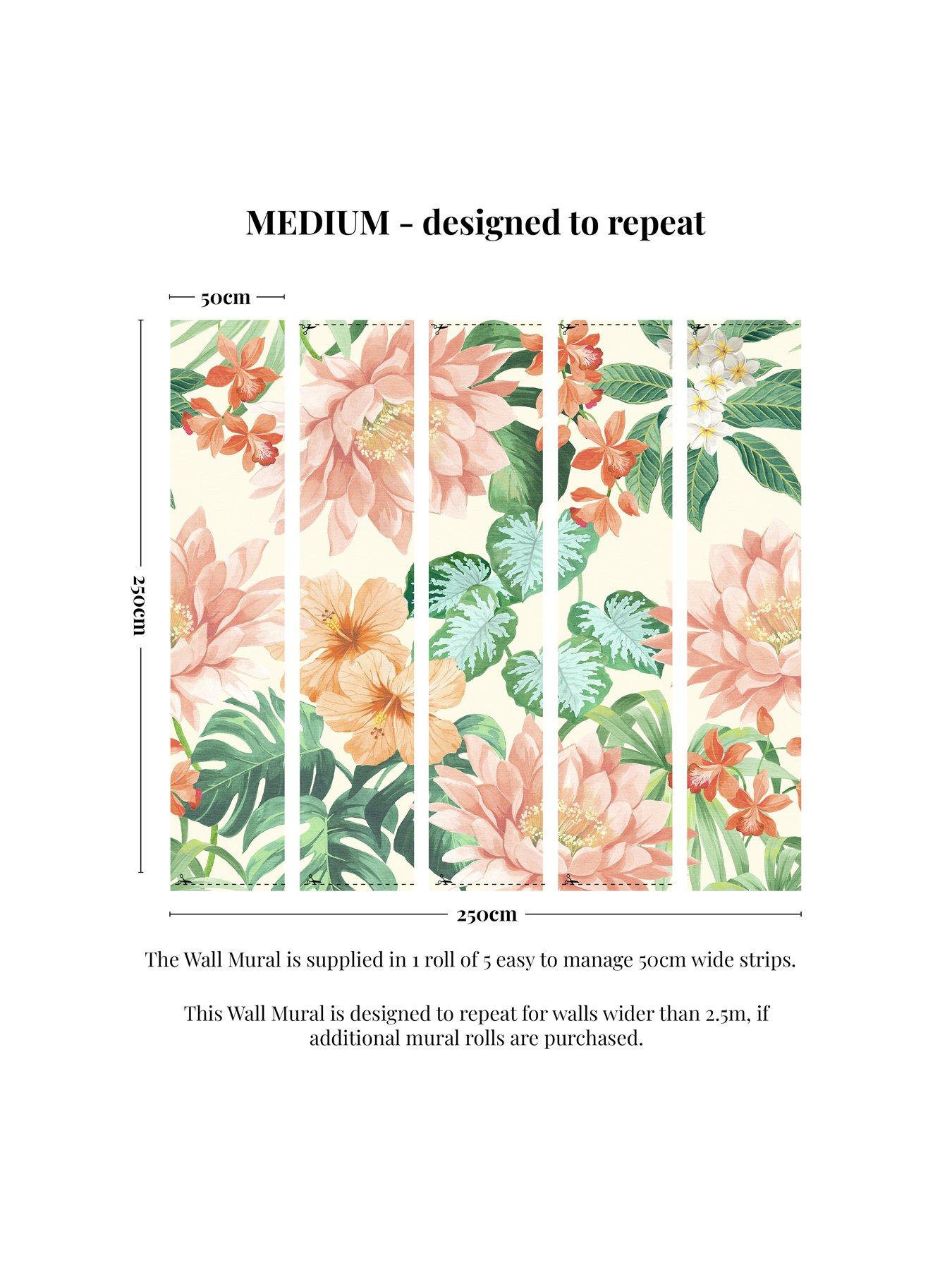 Very Home Tropical Floral Mural-coralA lush tropical mural featuring layered florals and leafy foliage in warm coral tones, creating an inviting and exotic atmosphere. Printed on a premium paste the wall substrate, it offers exceptional colour depth, durability, and easy installation for a refined finish.