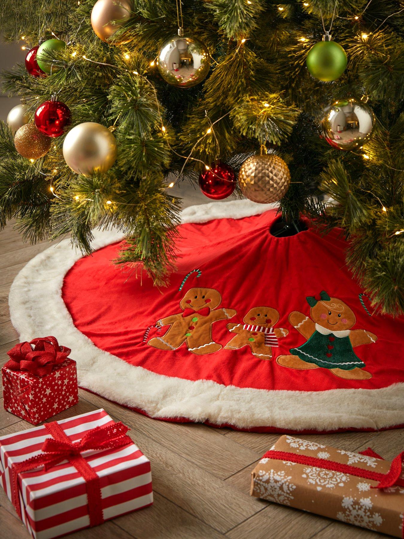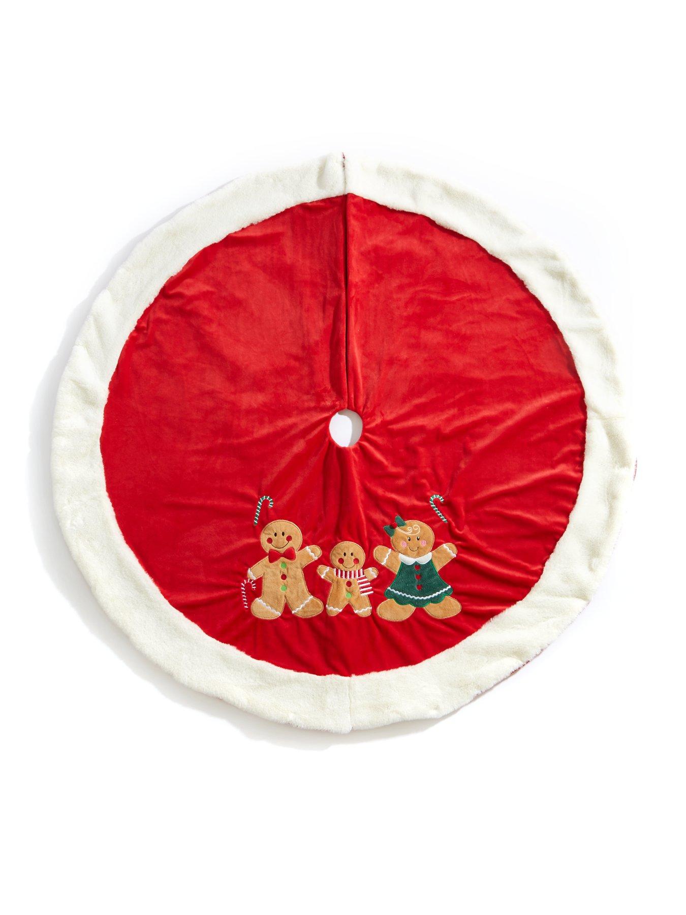 Three Kings Gingerbread Family Christmas Tree Skirt - 116 cm diameterPart of Three Kings' cheery Gingerbread collection of festive essentials, this Christmas tree skirt is made from a soft fabric and measures 116 cm in diameter.Perfect for keeping the unsightly stand hidden away, the red and cream skirt is detailed with a happy gingerbread family so that it acts as an extra decoration in its own right, ensuring your tree looks jolly from the star at the top all the way down to the floor. It's also a stunning centrepiece to the array of enticing presents Santa will place around it on Christmas Eve. And if you have a real tree, it will protect floors and carpets from those pesky falling needles! Easily folded away at the end of the festive season for convenient storage, it co-ordinates with the Gingerbread Stocking (see item number VJA30) and Gingerbread Gift Sack (VJA31).
