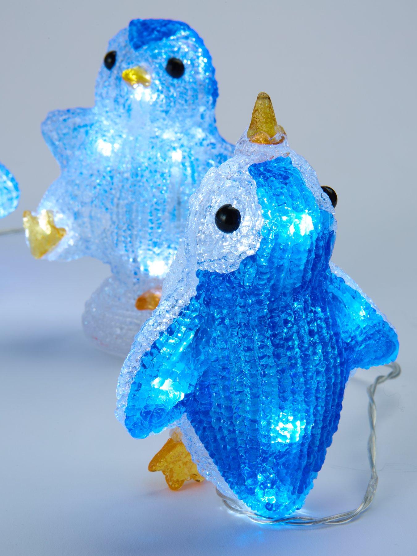 Three Kings Set of 5 Battery Operated Penguin Outdoor Christmas LightsTransform your garden grotto into a winter wonderland with this set of 5 light up penguins by Three Kings.The acrylic penguins come in a range of different poses and area each filled with cool white LEDs that light them up, so they'll always take centre stage in your outdoor space even when the sun goes down. But the best part is that they're battery operated, so you needn't worry about trying to find a socket and can place them anywhere in your space. To save on battery power, the auto timer will automatically switch them off.