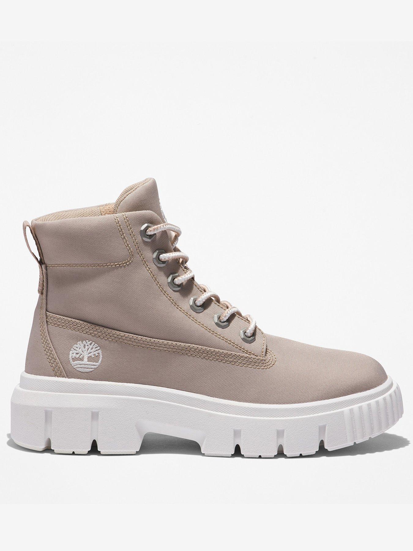 Timberland Greyfield Mid Lace Boot - HumusBuilt for long-lasting style, the Womens Greyfield Mid Lace Up Boot has an upper made with ReBOTL™ fabric and a ReBOTL™ fabric lining . The OrthoLite® foam footbed helps add comfort and the Defender Repellent Systems® treatment helps to keep it looking newer for longer.