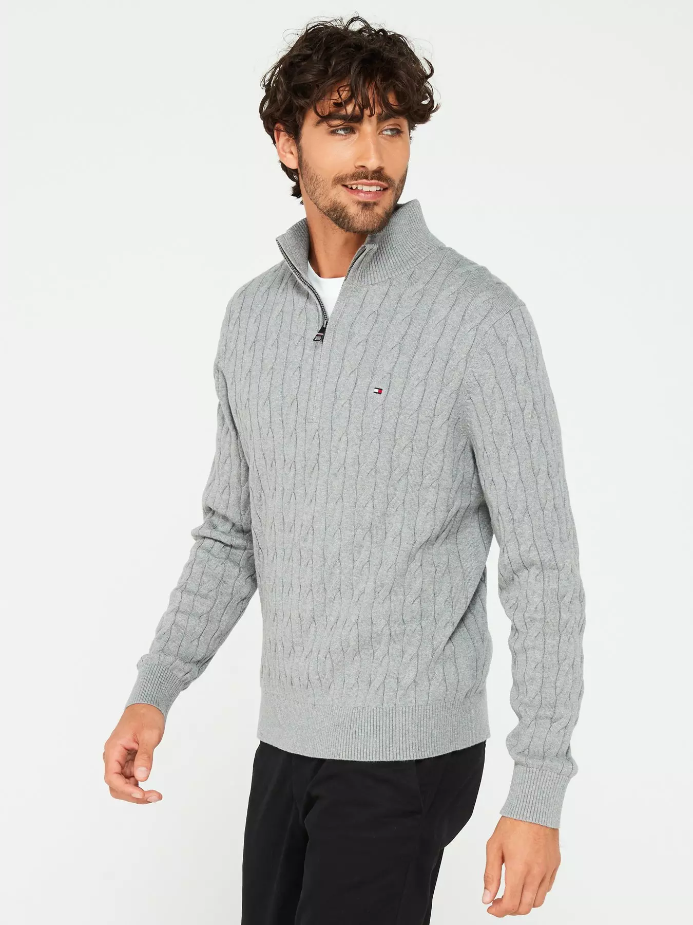 E.A.N: 8 7 2 0 6 3 7 3 5 1 5 1 2Tommy Hilfiger Classic Cotton Cable 1/4 Zip Mock Knitted Jumper - Grey