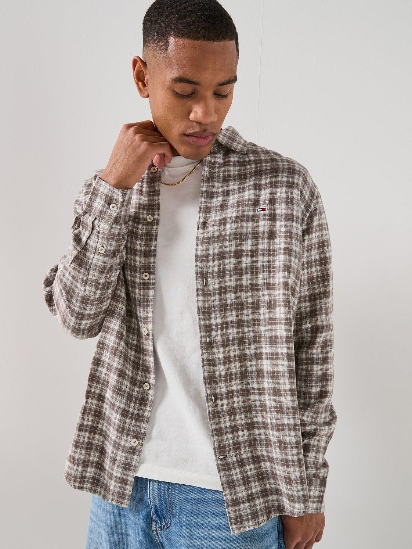 Tommy Jeans Relaxed Linen Blend Check Shirt - Ivy Mink SmallSize & Fit