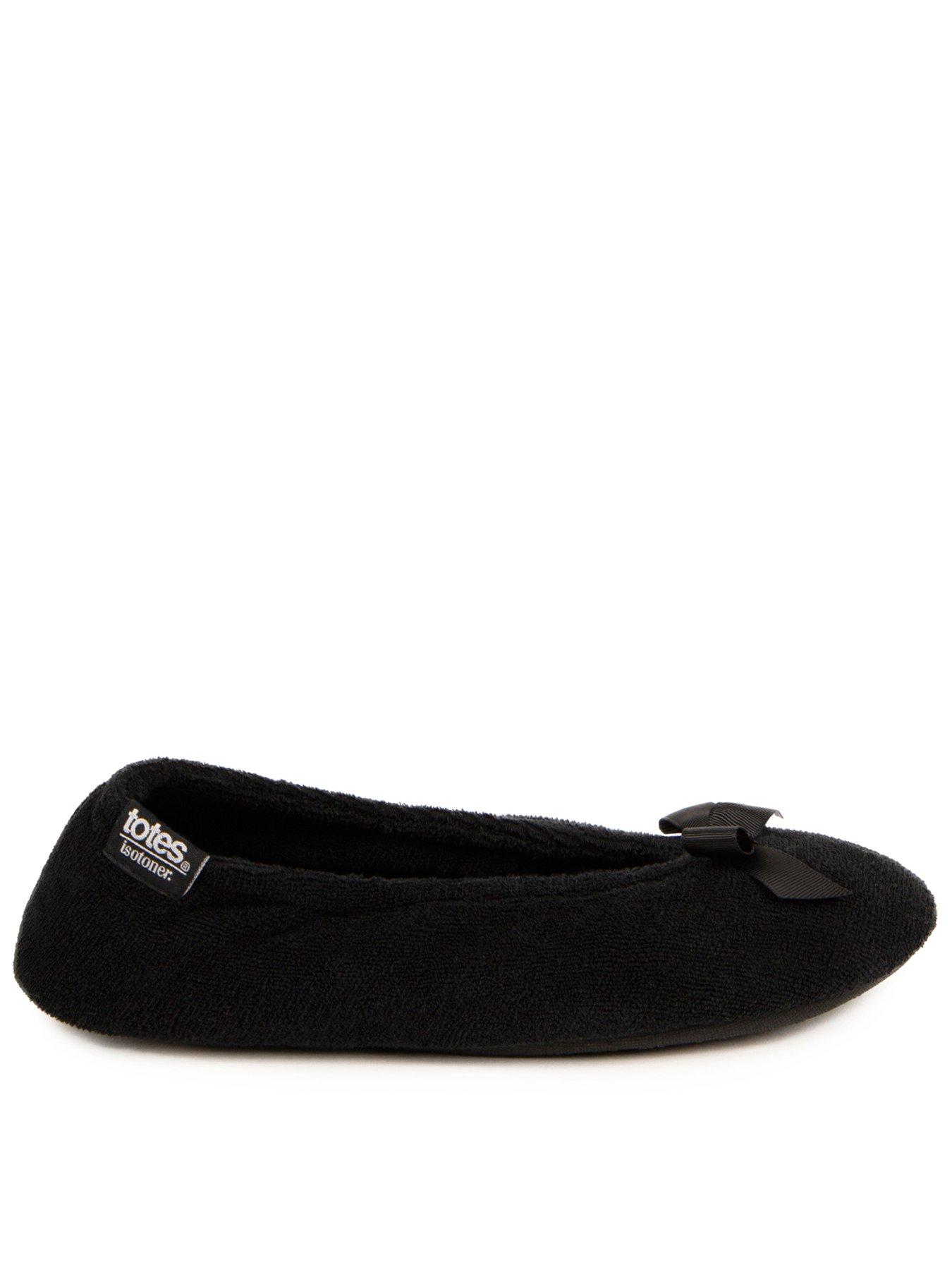 Totes Terry Ballet With PillowstepSize & FitA totes Isotoner classic - the 4-way stretch, cotton rich Terry Ballerina Slipper features our patented Pillowstep tufted insole for unique underfoot cushioning as well as ‘ULTRA COMFORT' foam layers. This slipper features a lightweight Durable Ballet Sole which allows an effortless toe to heel motion. With improved slip-resistance.