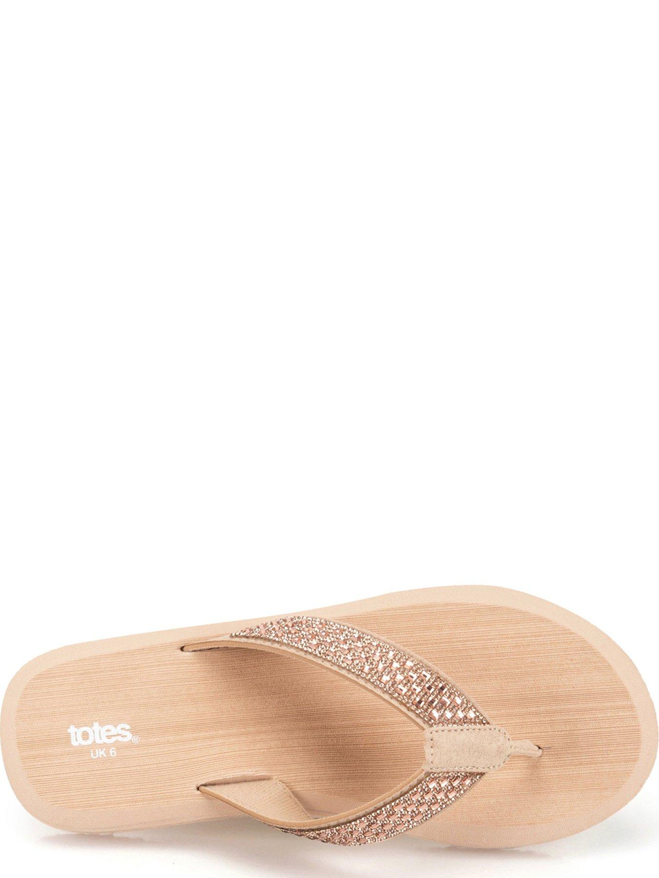 TOTES Totes Ladies Beaded Wedge Flip Flop - NudeStep into summer with a touch of sparkle in the totes Beaded Toe Post Flip-Flops. Featuring delicately beaded straps in a classic toe post design, these glamorous slip-ons are perfect for showing off your tan from sunrise to sunset. Designed for all-day comfort, they feature a lightweight, yoga mat-inspired cushioned footbed and a soft wedge sole. Dress them up or down for any occasion and add a glittery finish to your summer wardrobe.