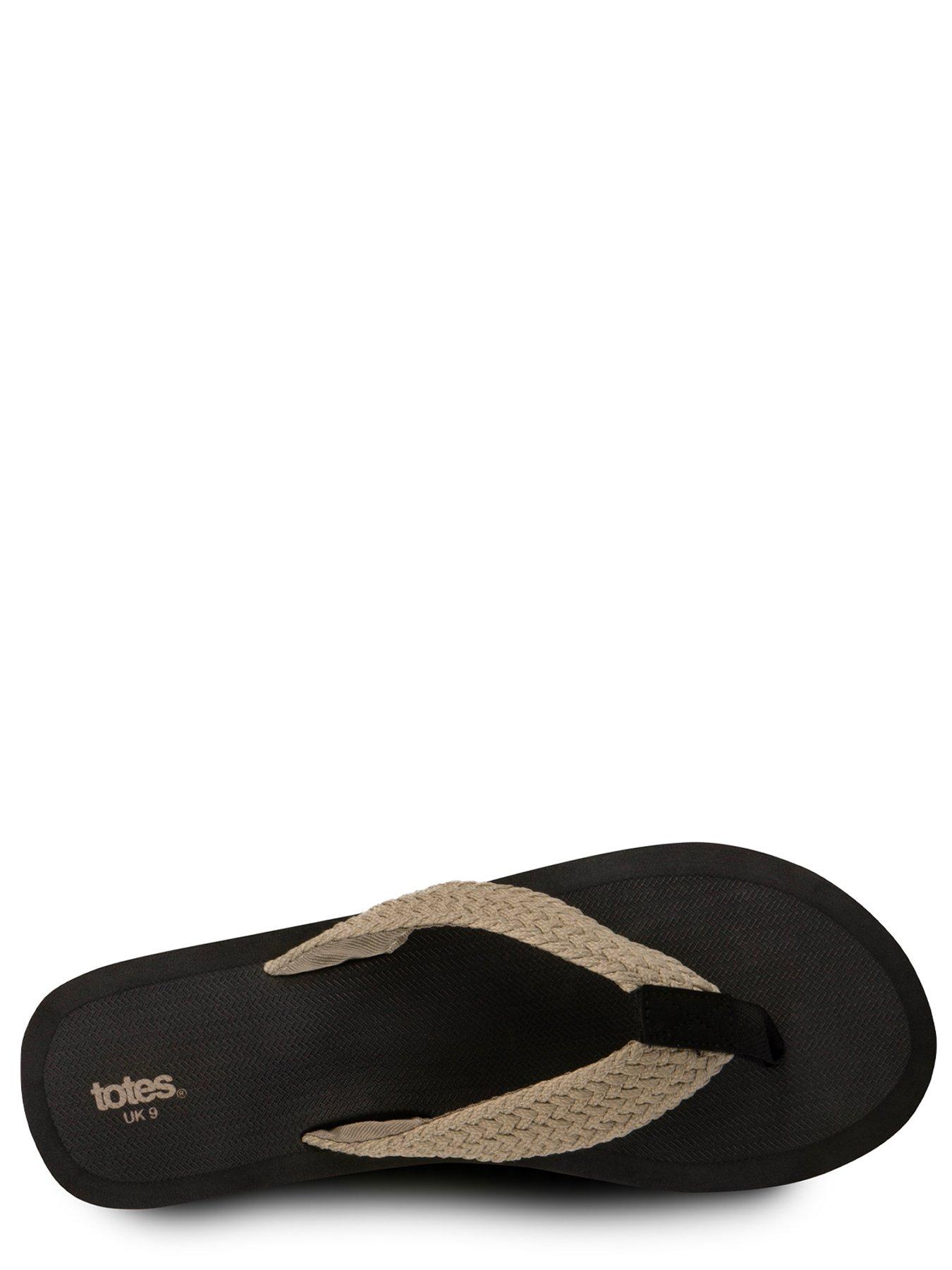 Totes Plait Detail Toe Post Flip FlopStep into summer in effortless style with our classic toe-post flip-flop sandals, designed for both comfort and versatility. Featuring a chic neutral plaited front for added flair, these sandals pair perfectly with trunks, shorts, cut-offs, jeans, or chinos for a laid-back, casual look. Enjoy day-long comfort thanks to the fabulously cushioned soft yoga mat footbed, ensuring every step feels like a breeze. Lightweight, flexible, and stylish, they're the ultimate summer essential for holidays and beyond.