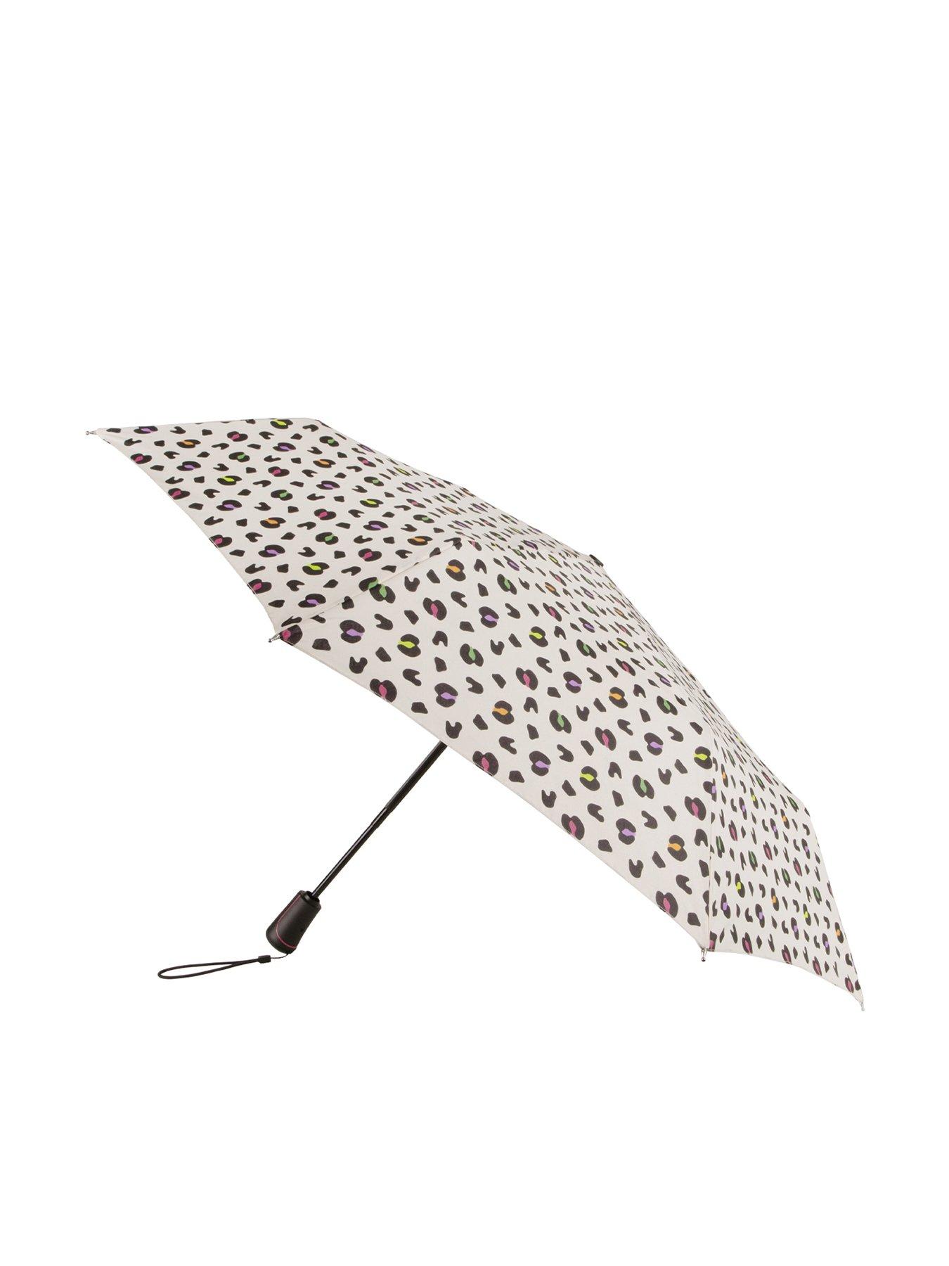 Totes Xtra Strong Auto Open/close Bright Animal UmbrellaOur new 3-section Auto Open/Close extra strong umbrella, featuring a bright animal print, is designed to withstand forceful winds and driving rain without inversion. It boasts a 100% recycled polyester fabric canopy with a PFC-free water-repellent coating, a steel frame, and a 3-section frame with an auto open/close mechanism. The umbrella has a diameter of approximately 98cm when open, providing excellent coverage and reliability.