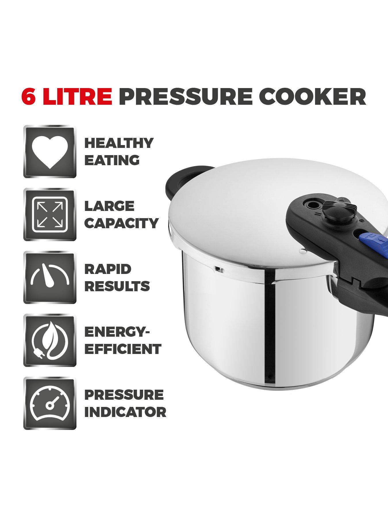 It uses the build-up of heat and steam to cook your food much quicker than traditional methods. Not only does this help to conserve energy when compared to the hob or oven, but because it uses an airtight lid, it also helps to retain the nutrients in your delicious dishes. A 6-litre capacity means this pressure cooker can fit around 6-8 portions, so it’s perfect for larger families, as well as those who like to meal prep in advance.