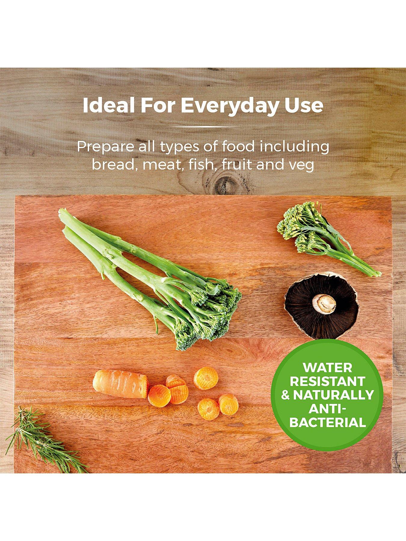 Tower Large Chopping BoardThis large chopping board from Tower is the ideal choice for minimalist designs and functionality. Prepare a range of ingredients from meat, fish, fruits and vegetables, while its unique design makes for a perfect serving board for entertaining dinner guests. Expertly crafted from off-cuts of mango wood to utilise waste, this chopping board has its own individual pattern with rich colours and distinctive grain, while tough enough for everyday use. The hardwood is water resistant and naturally antibacterial, making it perfect for food preparation and presentation boards. For added convenience, the board requires a swift wipe with a damp cloth for an easier clean.This durable chopping board is made from off-cuts of mango wood to utilise waste and create unique patterns, providing individuality with rich colours and distinctive grain. Water resistant and naturally antibacterial hardwood makes it perfect as both a food preparation and serving board DOUBLES AS A SERVING BOARD The rich colour and distinctive grain of the board means it can double up as a centre piece on your dining table. Perfect for any occasion, drawing the eye at dinner parties or adding rustic charm to family meals PROTECTS WORKTOPS Using this durable, heat resistant chopping board will protect your kitchen worktops from damage or scratching. EASY CLEANING For convenience, simply wipe the chopping board with a damp cloth to maintain the quality and aspirational appearance 3 YEAR GUARANTEE Trusted Tower quality with a standard 1 year guarantee and 2 year extension, subject to product registration online