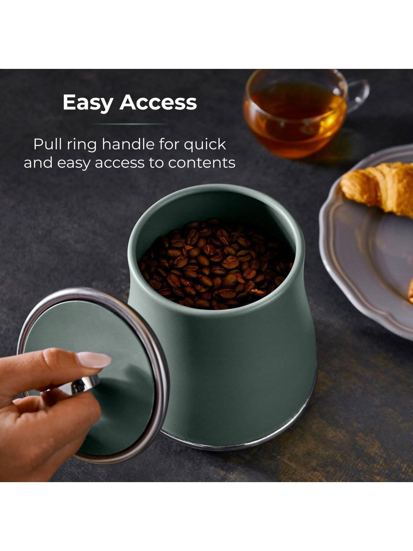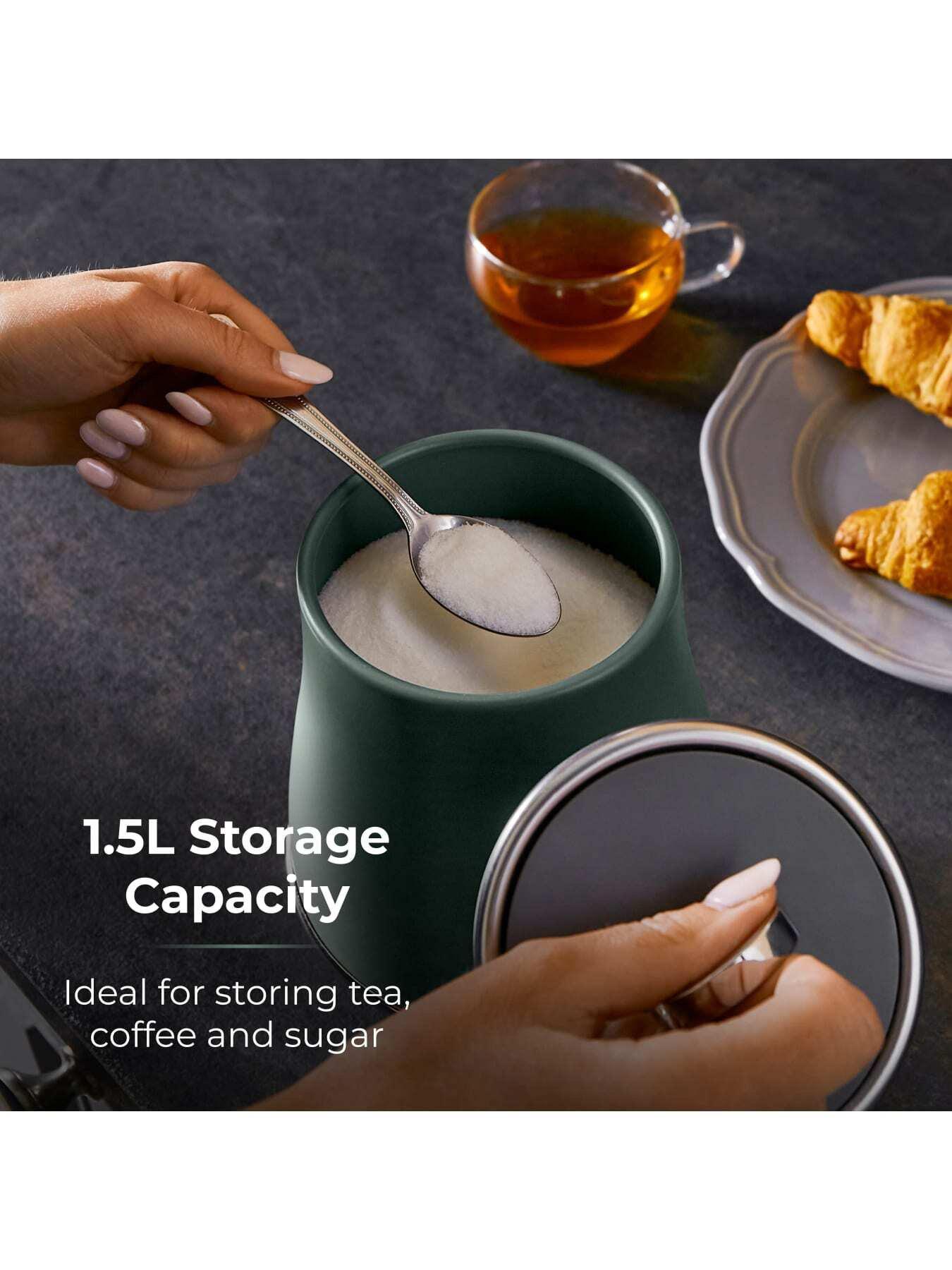 Tower Renaissance Set Of 3 CanistersThis eye-catching 3 canister storage solution for your tea, coffee and sugar features a unique classical antiquity design with modern chromed accents, forming part of the TOWER Renaissance range. Made from iron the canister body is durable and sturdy while the non-slip feet further ensure good adhesion to the surface. The stainless steel lids have been designed for easy handling and feature a silicone-seal to keep the contents fresh and odour resistant. T, C and S stickers are provided for labelling of the canisters, helping to identify the contents. The canisters are easily cleaned, requiring just a simple wipe. Dimensions for each canister are H20 x W14.50 x D10.5cm. 1.5L STORAGE CAPACITY Perfectly holds up to 1.5L of contents ensuring you never run out of your favourite refreshments. Each canister measures H20 x W14.5 x D10.5cm and is ideally suited to store tea, coffee and sugar, however can also be used for pasta, rice and a variety of other dried foods EASY ACCESS Detach the lids using the ring pull handles to conveniently empty or refill ingredients. SILICONE LID SEAL The lid boasts a silicone seal, which ensures long-lasting freshness DURABLE IRON BODY Durable iron body & airtight lid maintain the freshness of your tea, coffee or sugar LABELS INCLUDED Easy to apply T, C & S labels are included, should you wish to label each canister ANTI-SLIP FEET Non-slip feet provide added stability on your countertop to keep each storage canister safe and secure 3 YEAR GUARANTEE Trusted Tower quality with a standard 1 year guarantee and 2 year extension, subject to product registration online