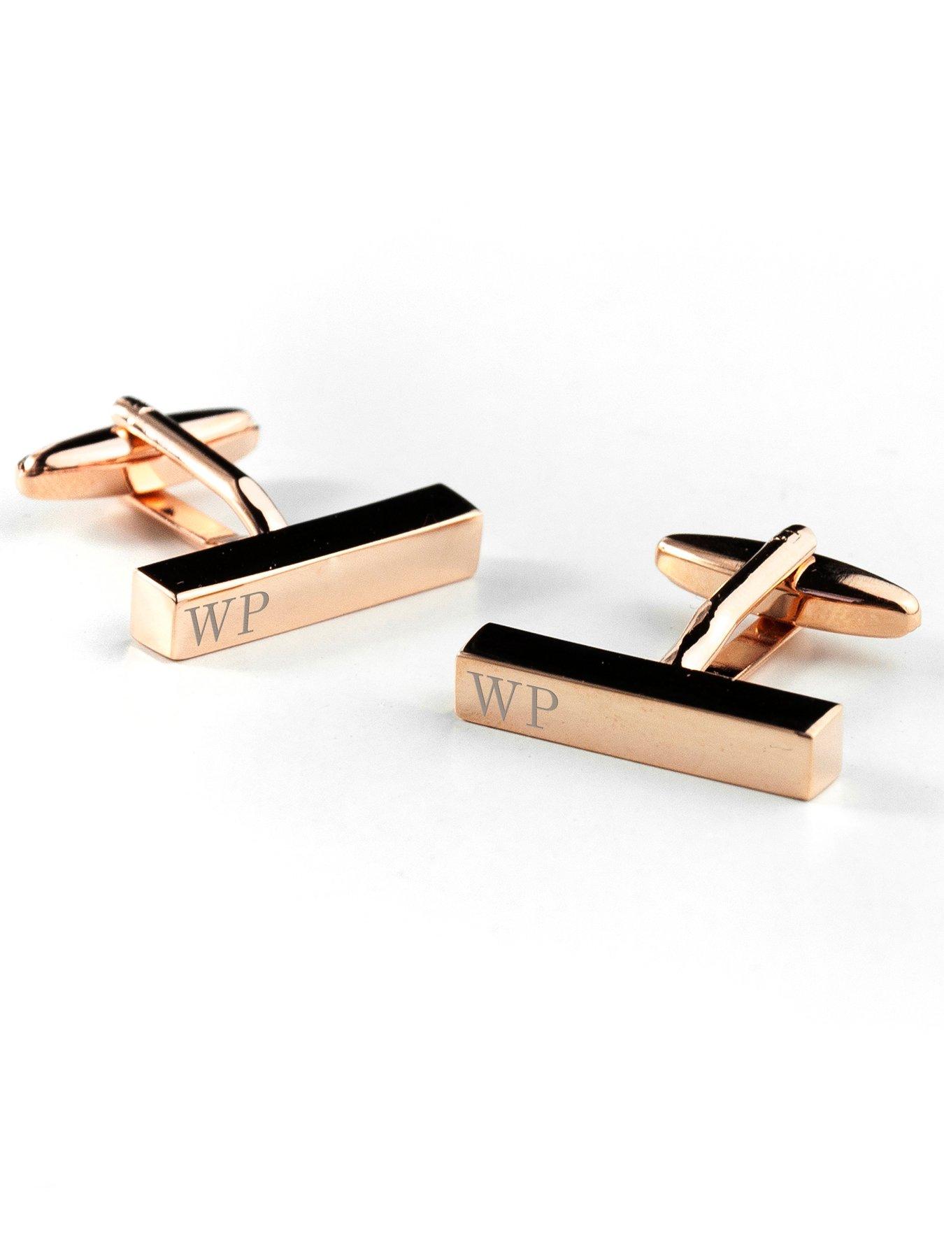 Treat Republic Personalised Bar Cufflinks in Rose GoldThese beautifully crafted, premium quality personalised silver or rose gold bar cufflinks are stylish and contemporary and the perfect accessory for any dapper man. n.Cufflink 1: Up to 12 charactersCufflink 2: Up to 12 charactersDimensions: 2.5cm x 0.5cm x 2.4cm