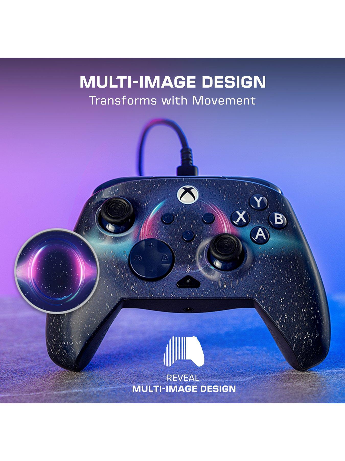 Turtle Beach Rematch Advanced Wired Xbox Controller in Dark Cosmos Reveal - with cool, lenticular finish.Take your gaming setup to the next level with the Rematch Advanced Wired Gaming Controller for Xbox and PC. Designed to turn heads, this controller features a unique shifting design that reveals two bold looks in one. The lenticular finish creates a layered visual effect that changes as you move the controller, delivering a striking, ever-changing appearance that makes a statement from every angle.Beyond its lively design, the Rematch Advanced Wired Gaming Controller is packed with features that redefine how you play. True Hall effect hair triggers with a 2-stop function enhances precision and reaction time, allowing you to fine-tune every movement for maximum control. Equipped with mappable quick-action back buttons, this controller lets you create custom commands, giving you an edge over competition with lightning-fast response times and improved efficiency in high-pressure moments. Immerse yourself in every battle with dual rumble motors and impulse triggers, delivering realistic feedback that pulls you deeper into action. Stay focused on the game and seamlessly adjust your audio settings on-the-fly with patented D-pad audio controls, letting you adjust game/chat mix, master volume, and a dedicated mic mute button. Designed for maximum comfort, this controller features laser-etched thumbsticks, grips, and triggers that provide a secure, tactile feel that enhances control and reduces fatigue. The ergonomic design ensures a natural fit, allowing for extended play sessions without discomfort. Take customisation to the next level with the free Control Hub app, allowing you to re-map buttons, fine-tune trigger sensitivity, adjust dead zones, and easily update firmware, for a gaming experience tailored to your playstyle. Officially licensed by Xbox, this controller delivers the perfect combination of style, precision, and customisation to take your gaming to the next level.